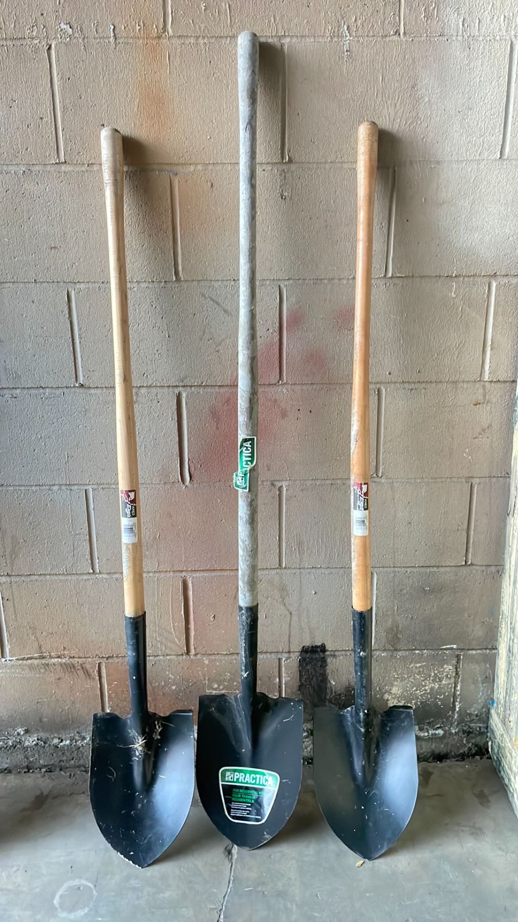 3 BLACK WOOD HANDLE METAL SPADE SHOVELS