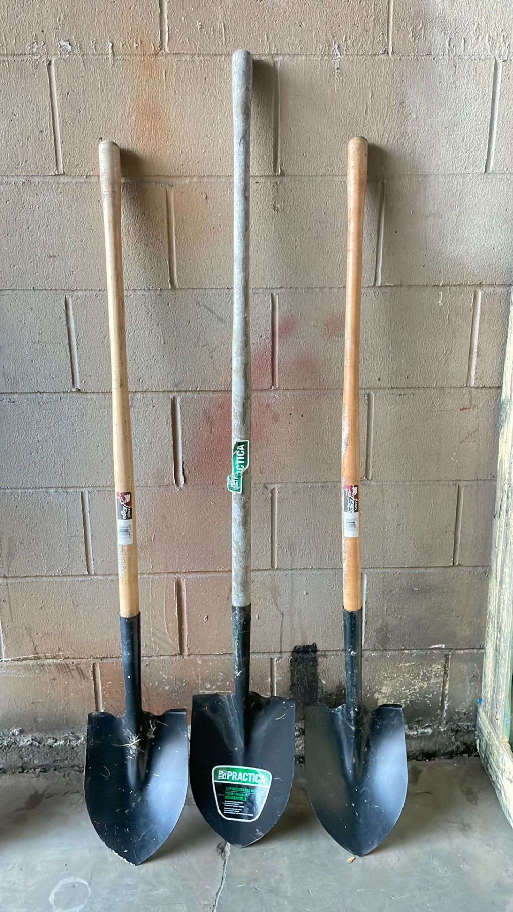 3 BLACK WOOD HANDLE METAL SPADE SHOVELS