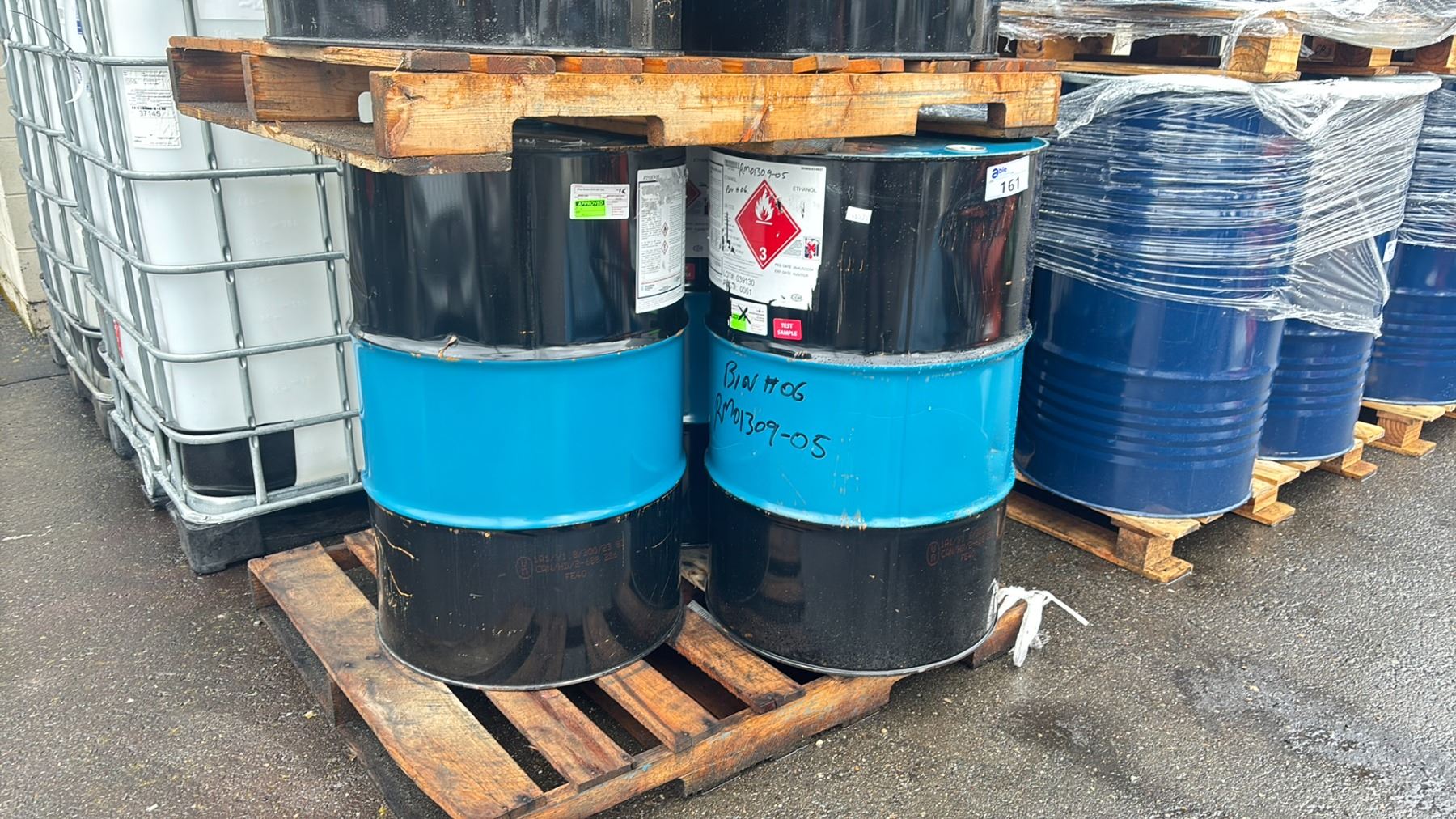 3 BLUE/ BLACK INDUSTRIAL METAL EMPTY BARRELS WITH NO LIDS