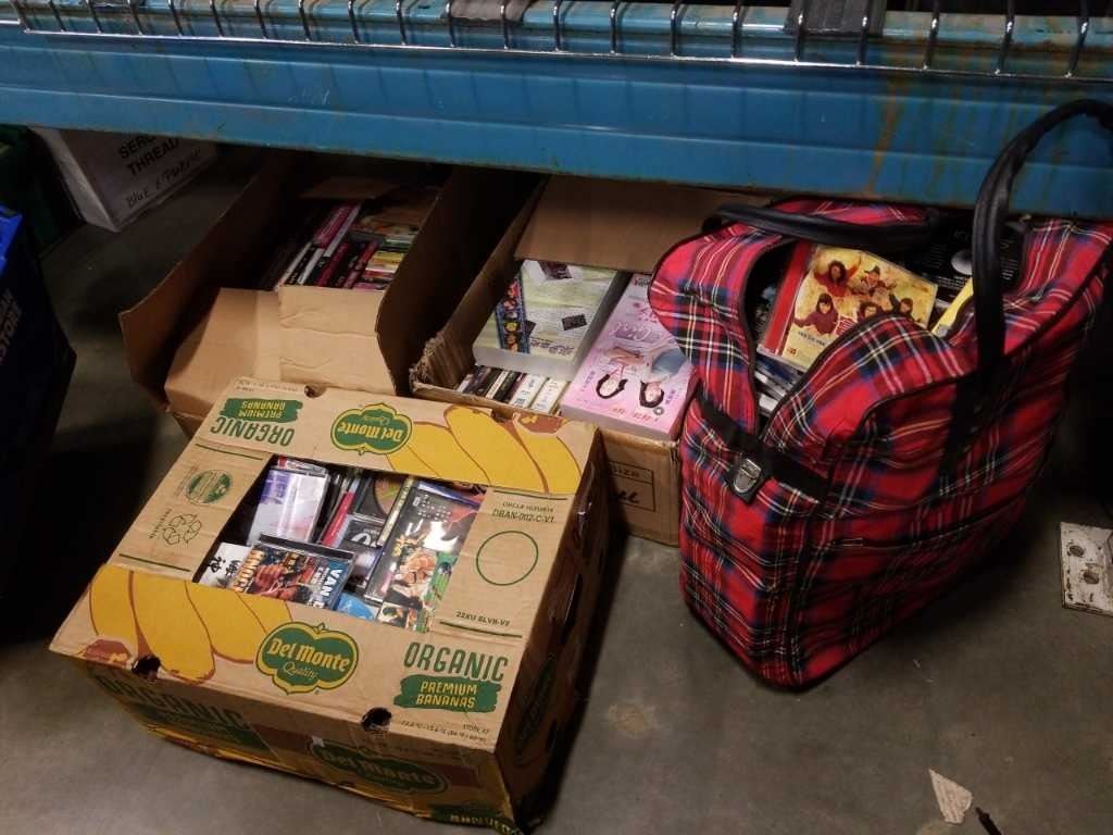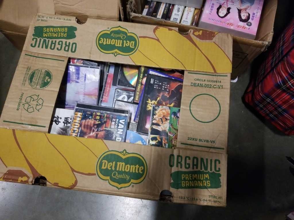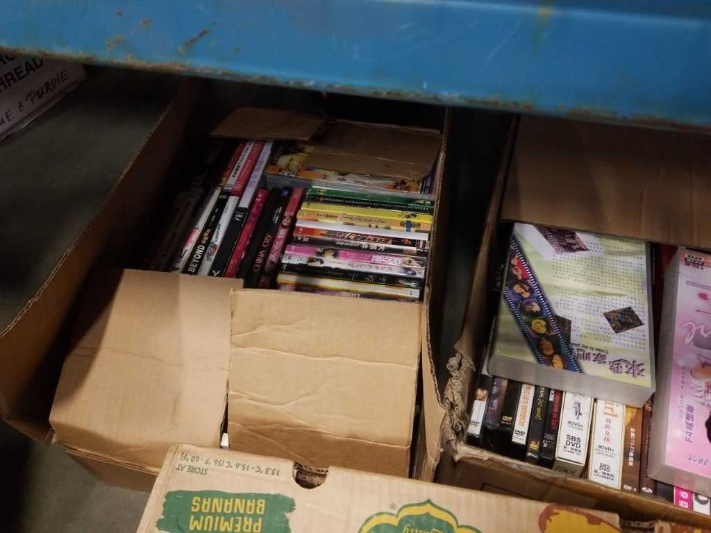 3 BOXES AND SUITCASE OF DVDS AND CDS