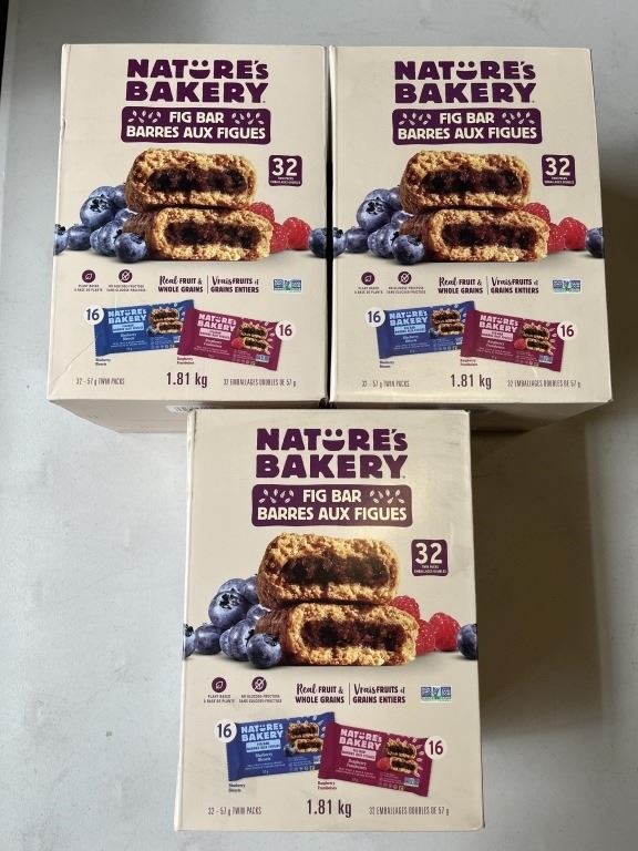 3 BOXES NATURES BAKERY FIG BARS - 32 TWIN PACKS PER BOX, RETAIL $25, 96 PACKS TOTAL RETAIL $75, BEST