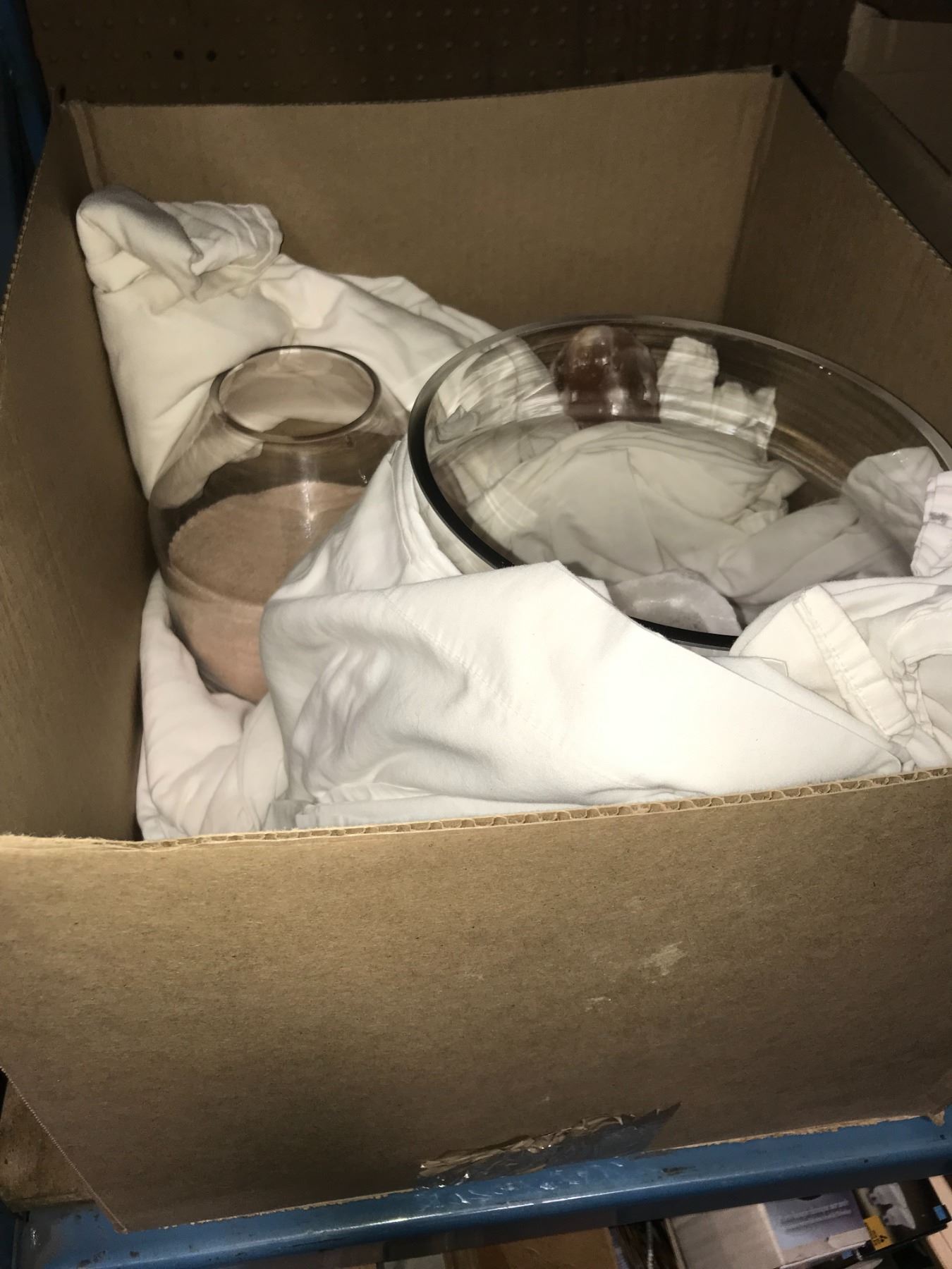 3 BOXES OF ASSORTED HIMALAYAN SALT ROCK AND DISPLAY GLASSWARE