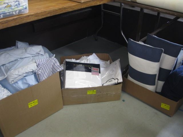 3 BOXES OF ASSORTED PILLOWS, SHEETS ETC.