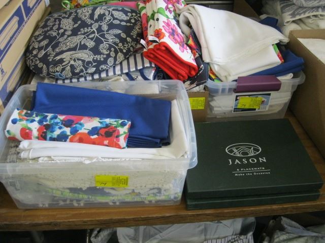 3 BOXES OF ASSORTED PLACEMATS, NAPKINS, WASH CLOTHS ETC.