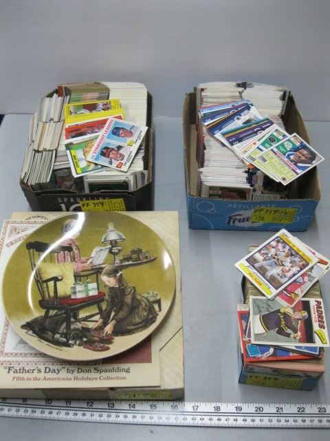 3 BOXES OF ASSORTED SPORTS CARDS - BASEBALL/ FOOTBALL, ETC. & A COLLECTOR PLATE