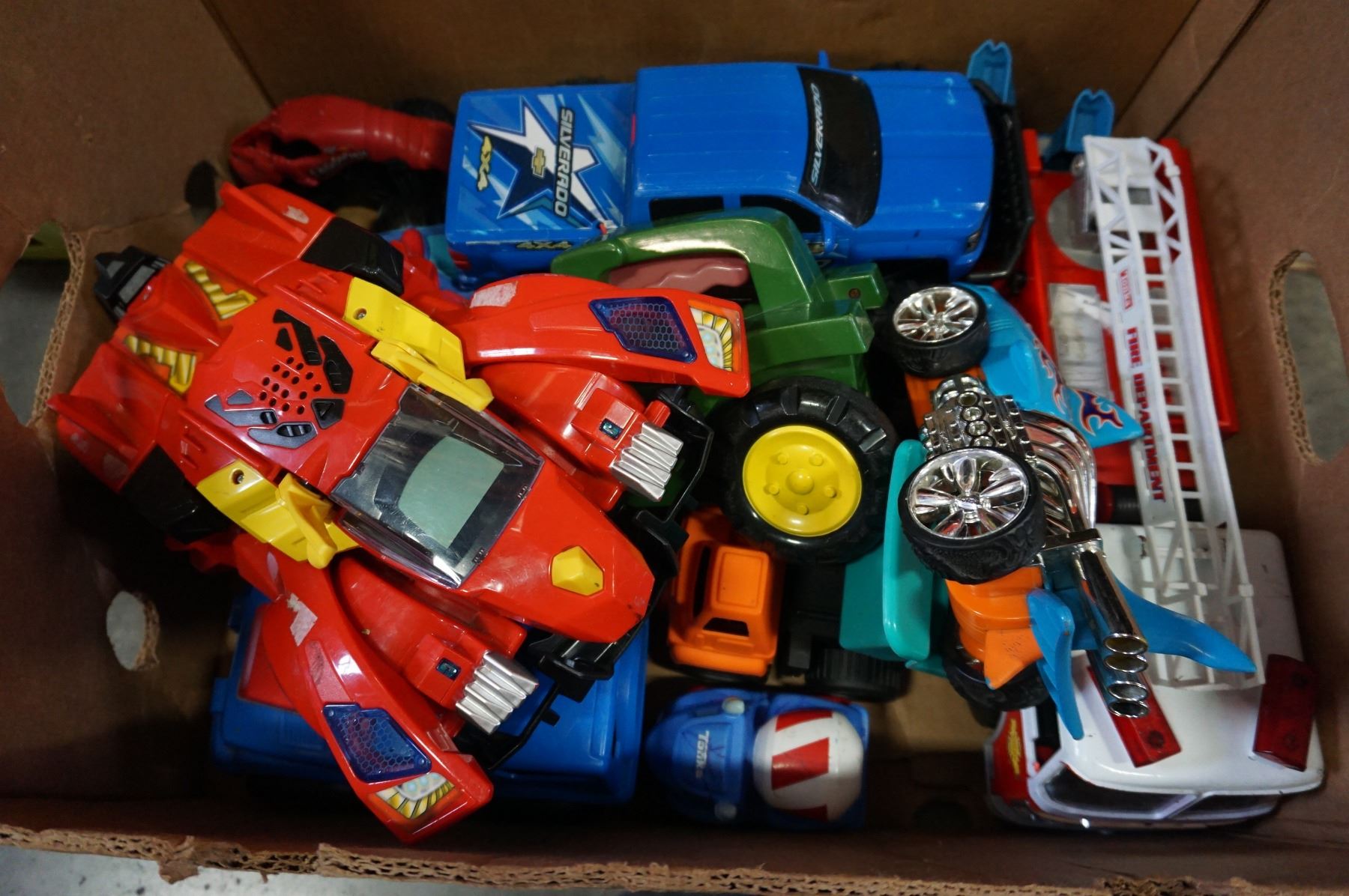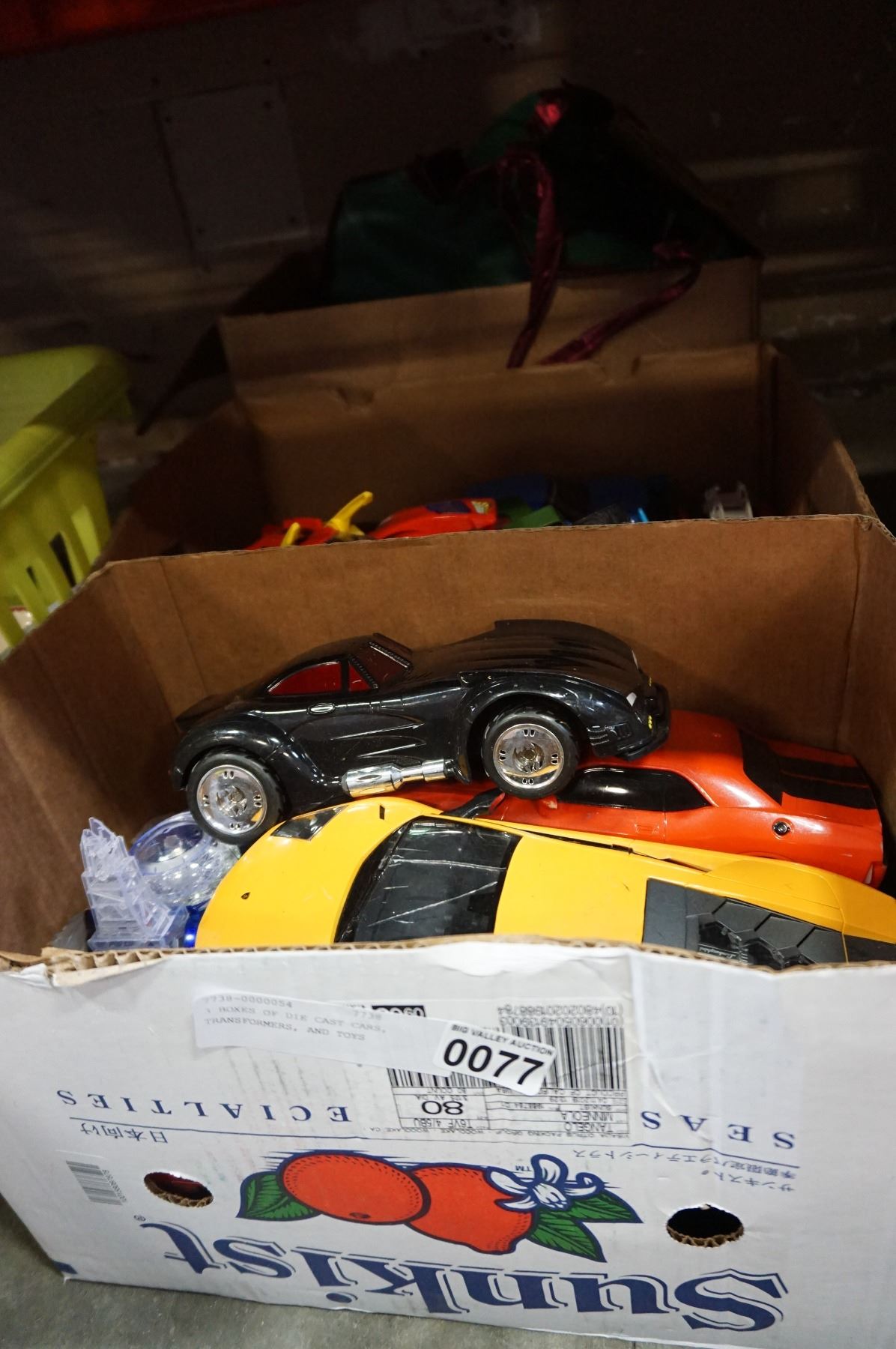 3 BOXES OF DIE CAST CARS, TRANSFORMERS, AND TOYS