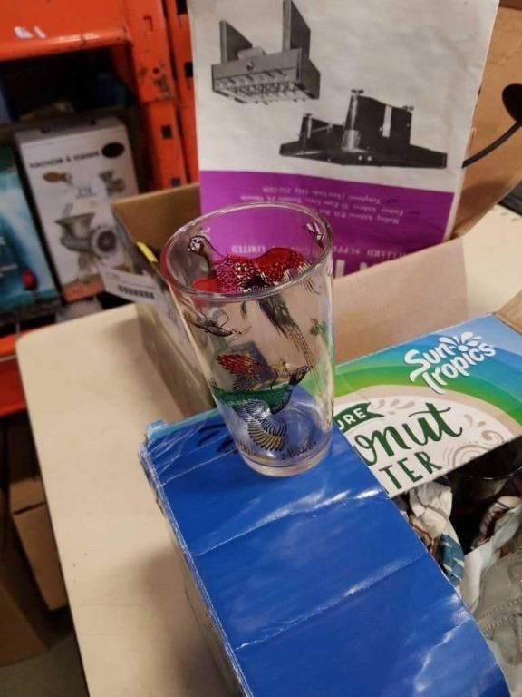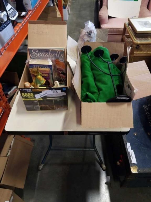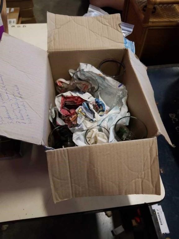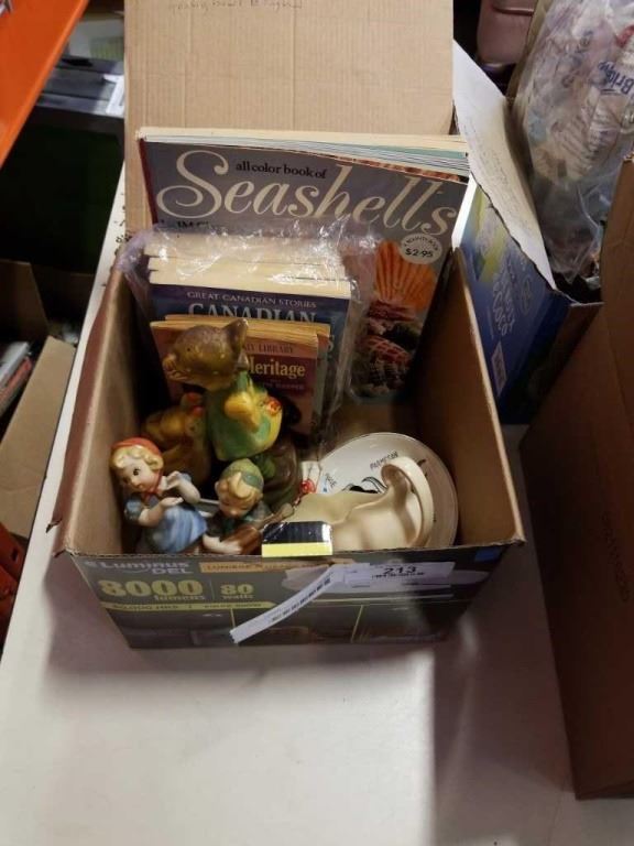 3 BOXES OF ESTATE GOODS, HUMMEL STYLE FIGURES, BILLIARD TABLE CLOTH, TUMBLERS