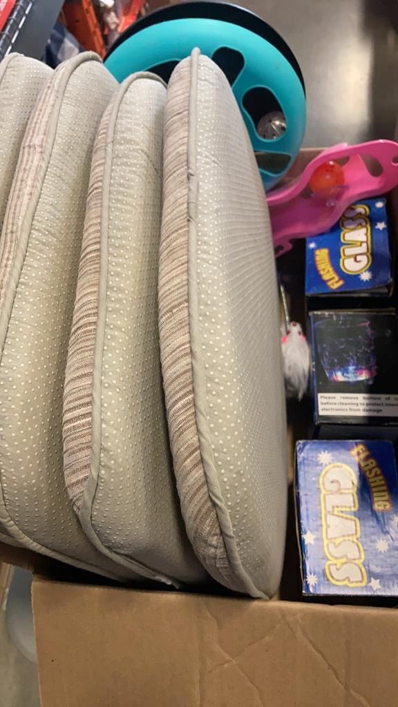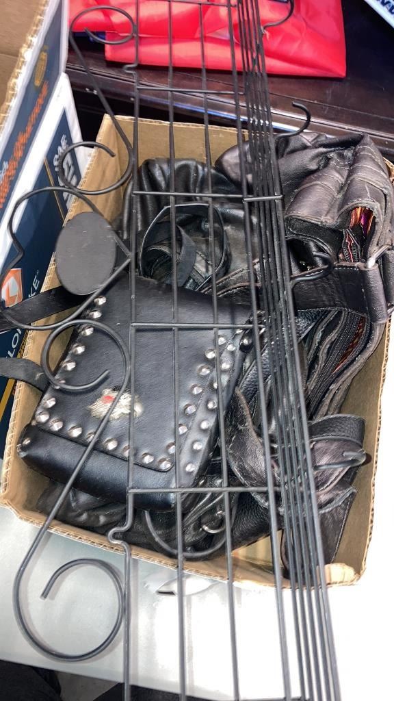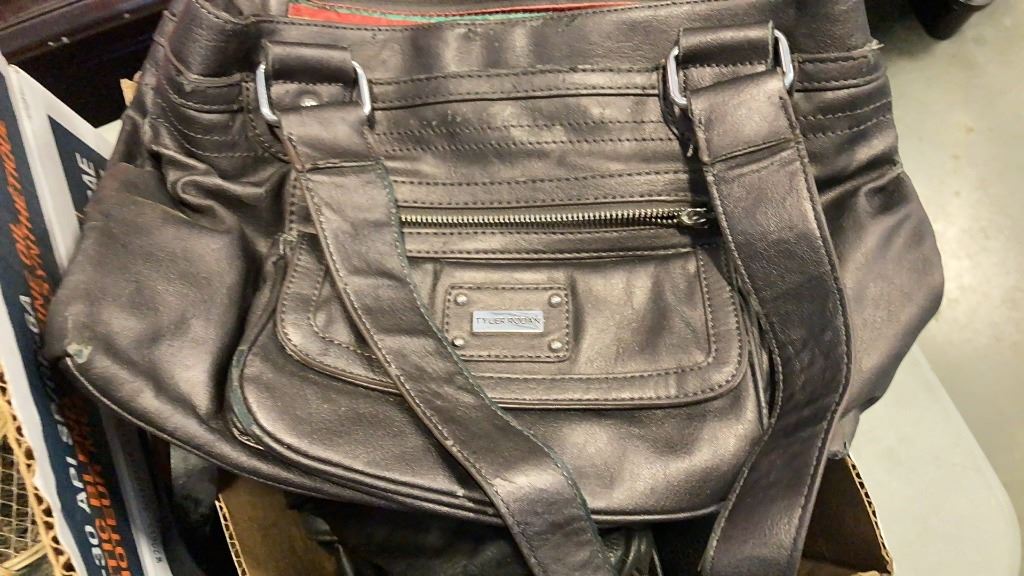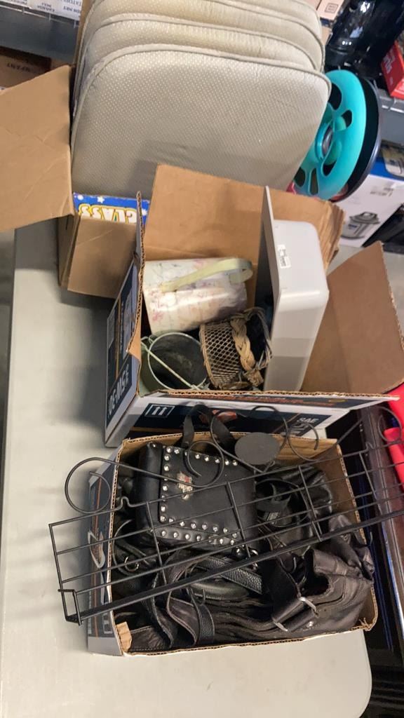 3 BOXES OF ESTATE GOODS, PURSES, PET TOYS
