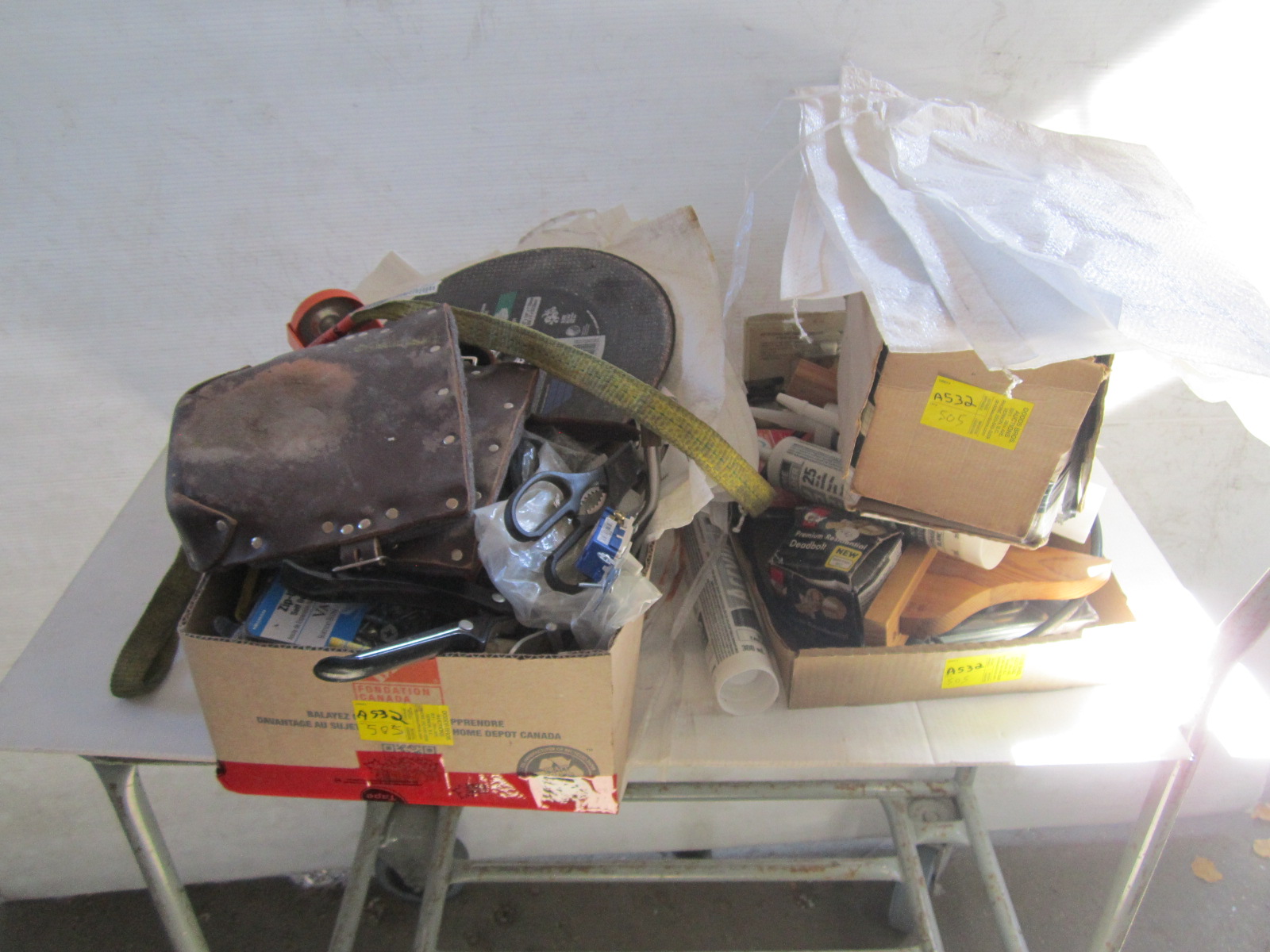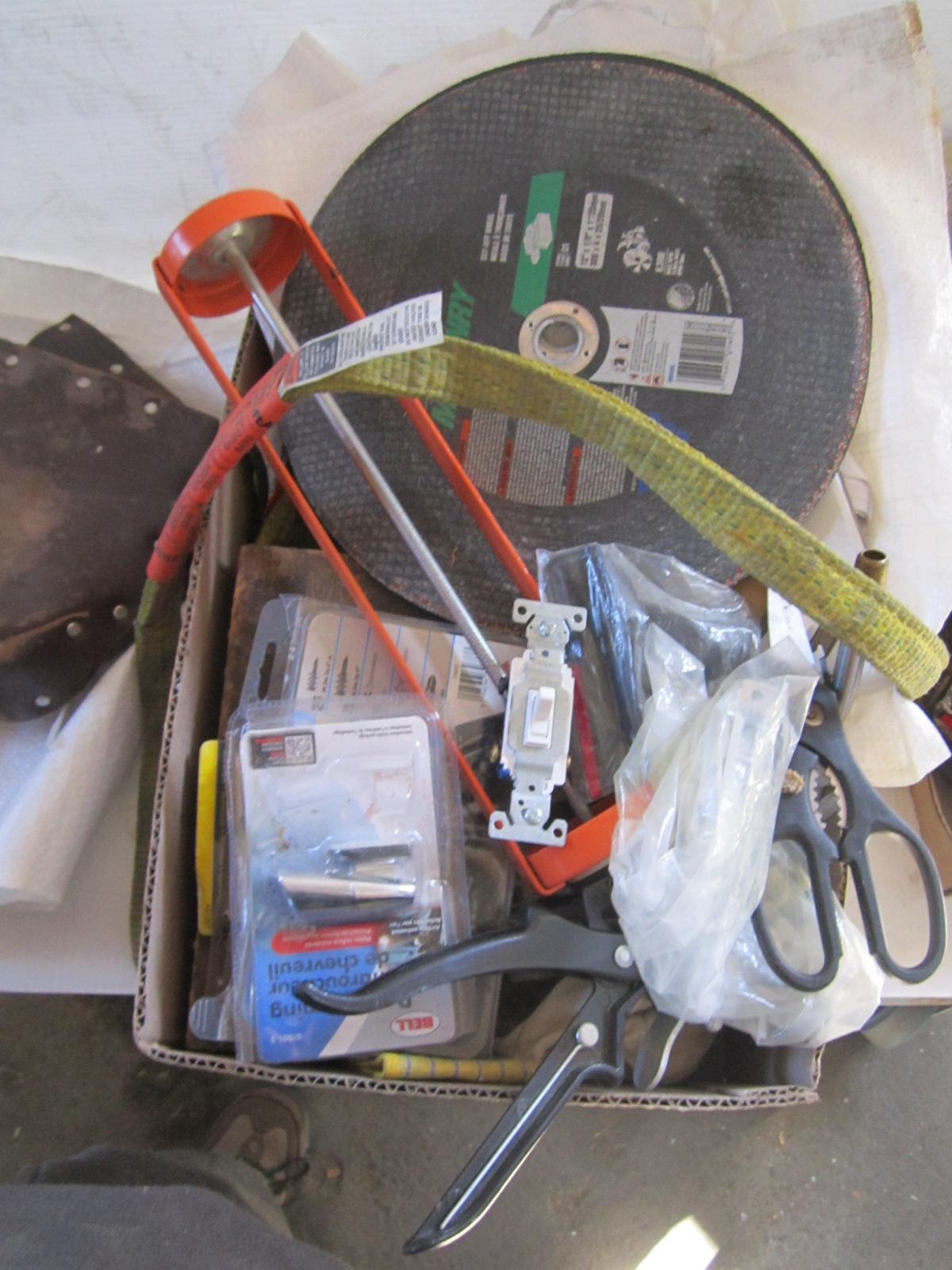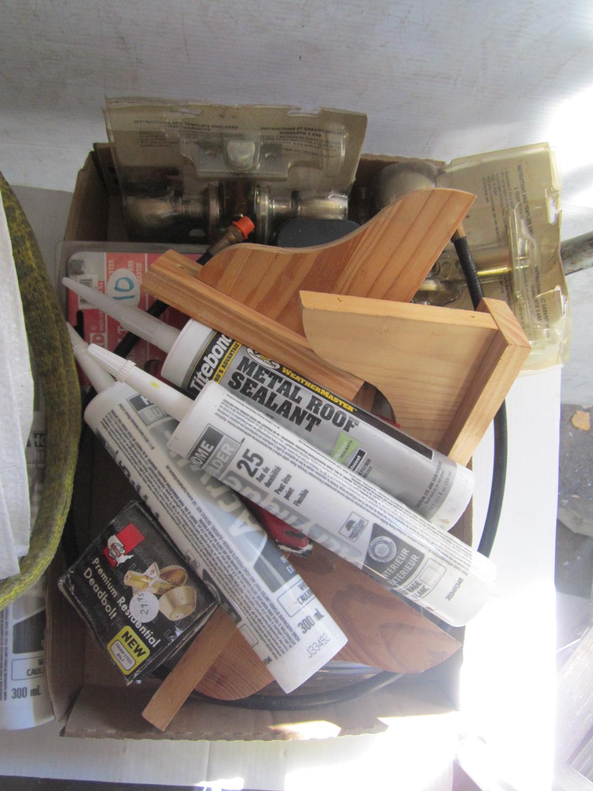 3 BOXES OF MISC. CAULKING TOOLS, ELECTRICAL, ETC.