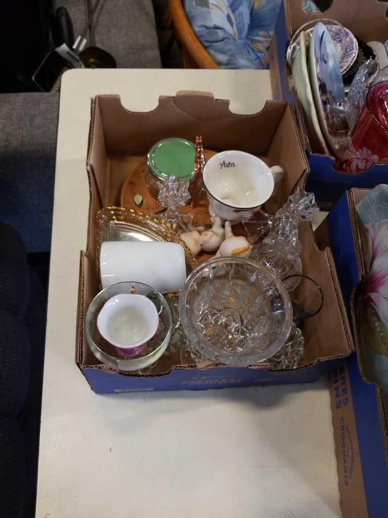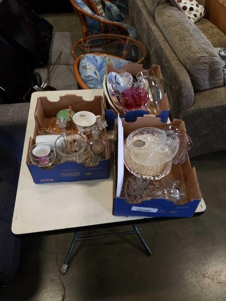 3 BOXES OF PINWHEEL CRYSTAL AND COLLECTIBLES