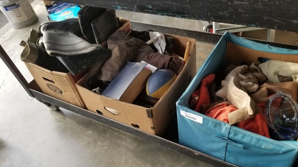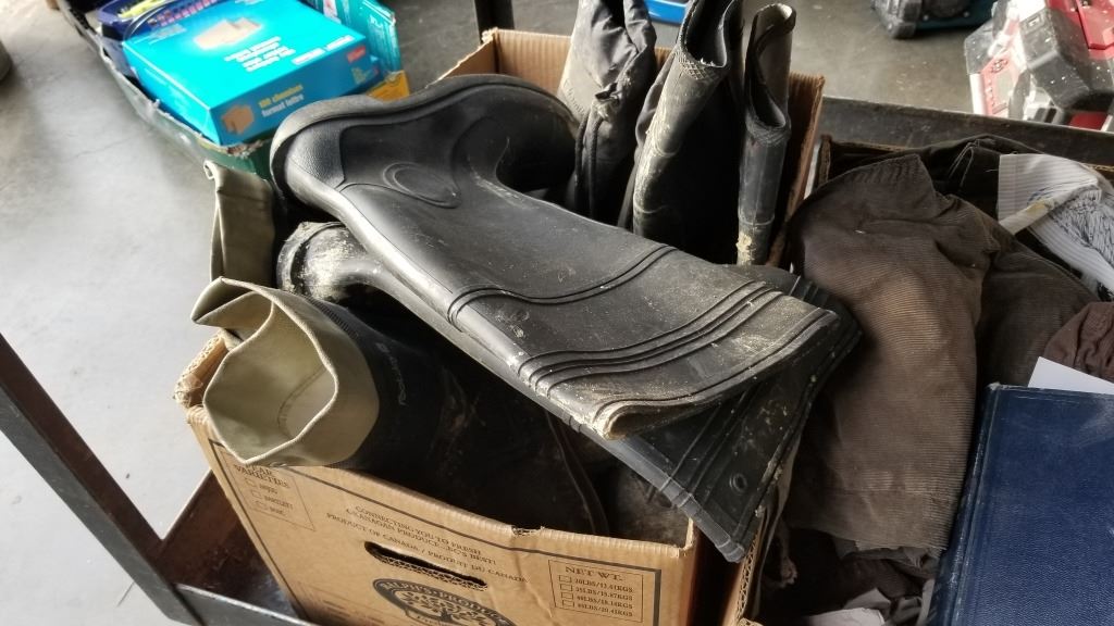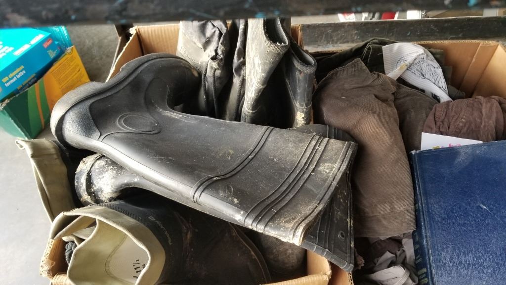3 BOXES OF RUBBER BOOTS AND ESTATE ITEMS