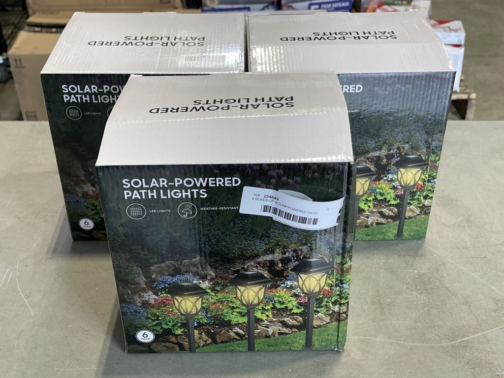 3 BOXES OF SOLAR POWERED PATH LIGHTS, 6 LIGHTS PER BOX