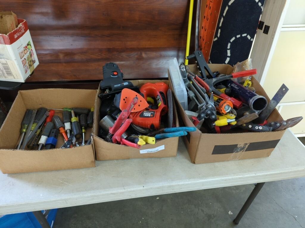 3 BOXES OF TOOLS AND SHOP SUPPLIES