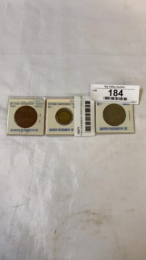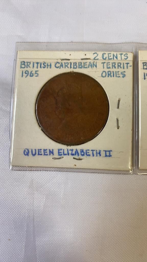 3 BRITISH CARIBBEAN TERRITORIES COINS - 1955 50 CENT, 1965 2 CEMT, 1955 5 CENT