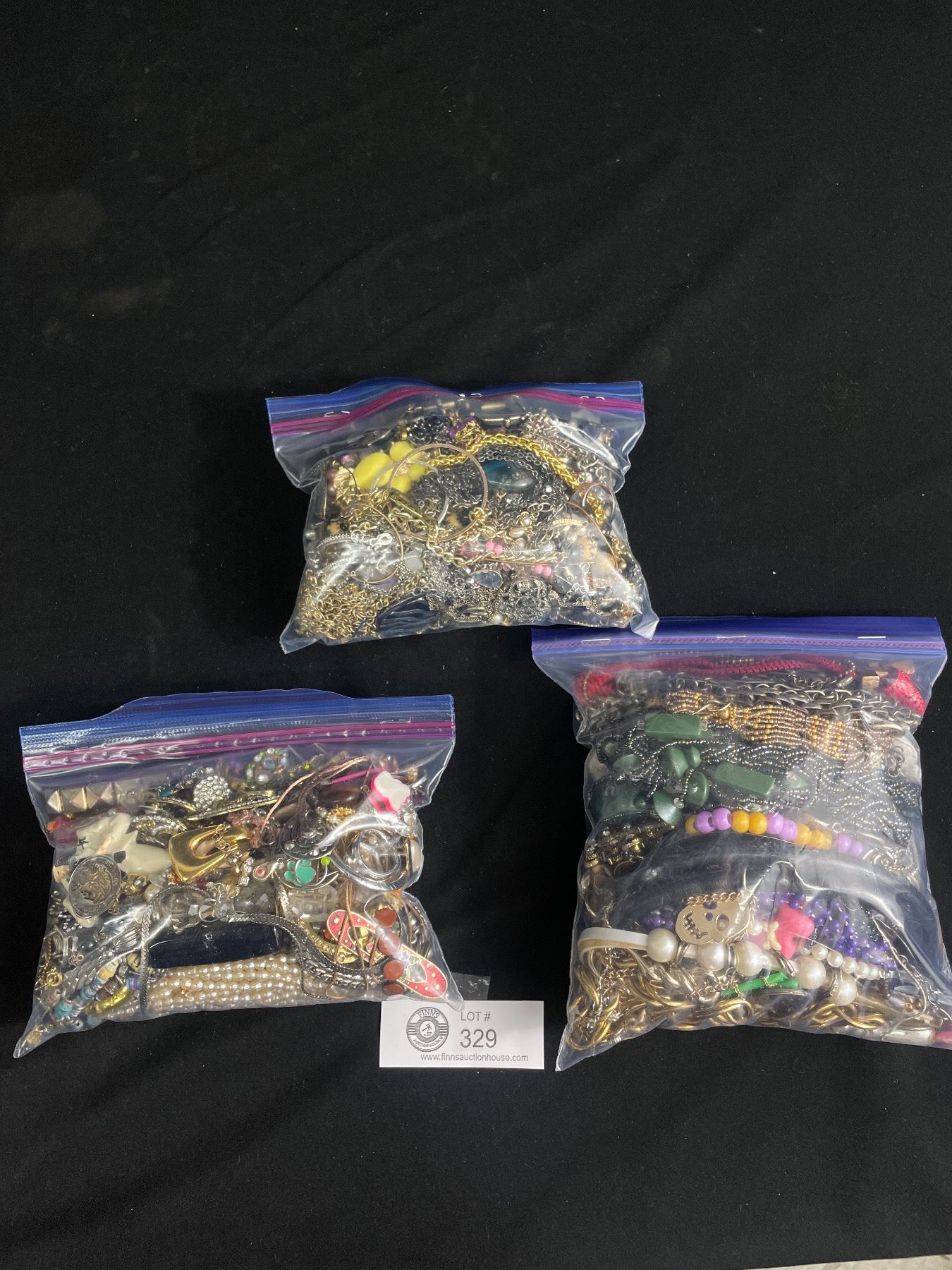 3 Bags of Misc. Costume Jewelry, Earrings, Pendants, Parts