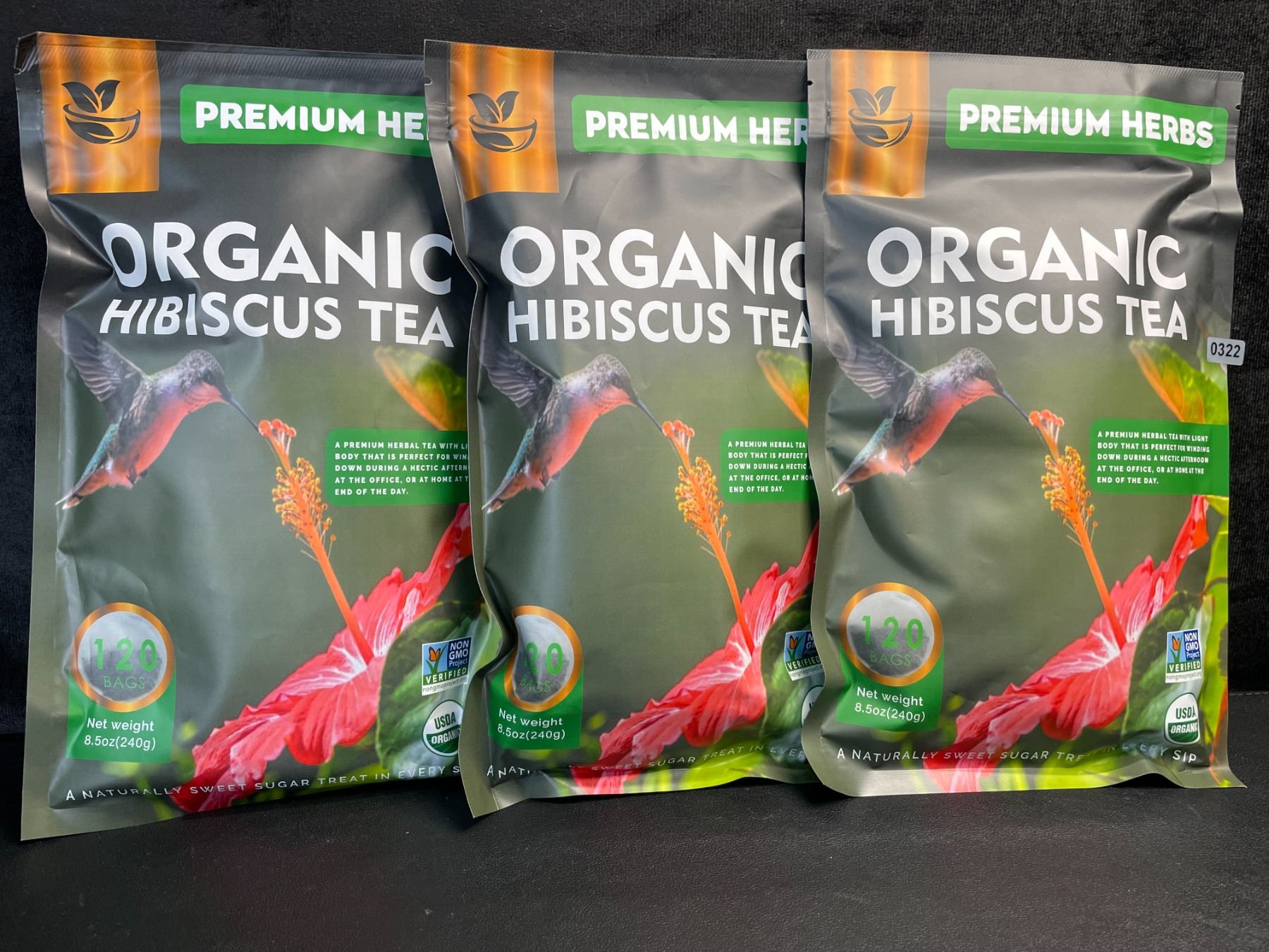 3 Bags of Premium Herbs Organic Hibiscus Herbal Tea - 120 Tea Bags Each - New (Exp: 02/2026)