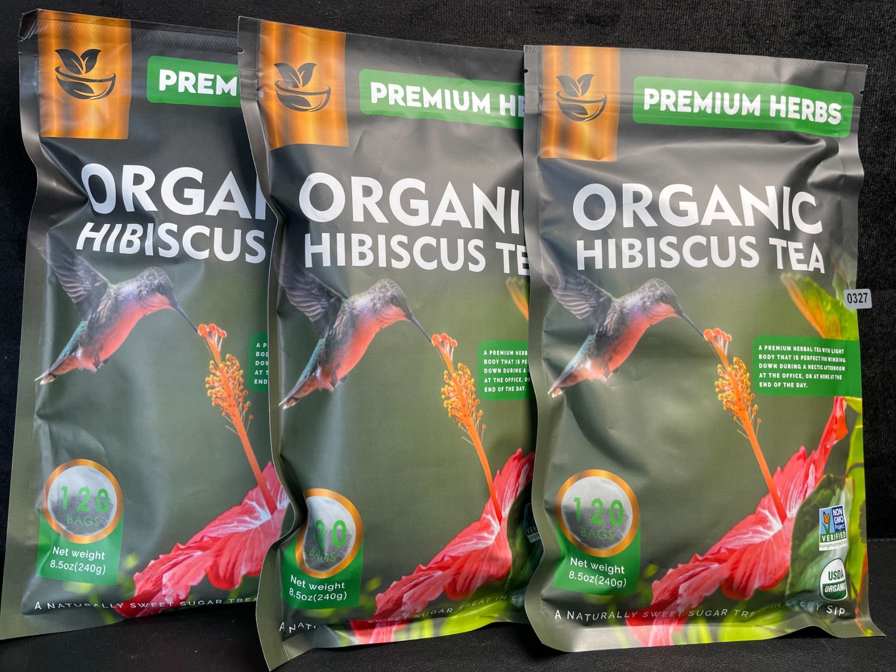 3 Bags of Premium Herbs Organic Hibiscus Herbal Tea - 120 Tea Bags Each - New (Exp: 02/2026)