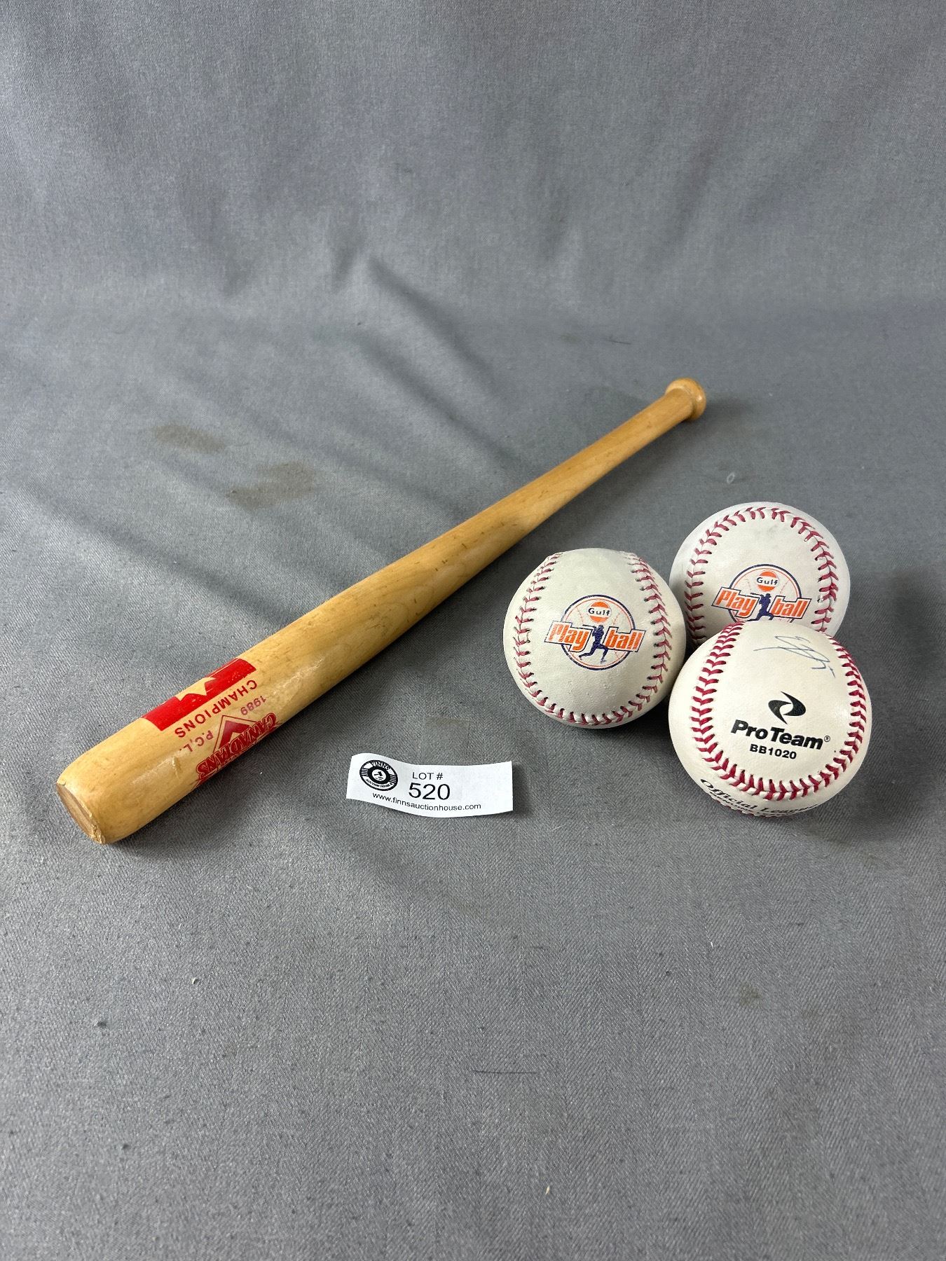 3 Baseballs, 1 Is Signed & Mini 1989 Vancouver Canadians Wood Bat