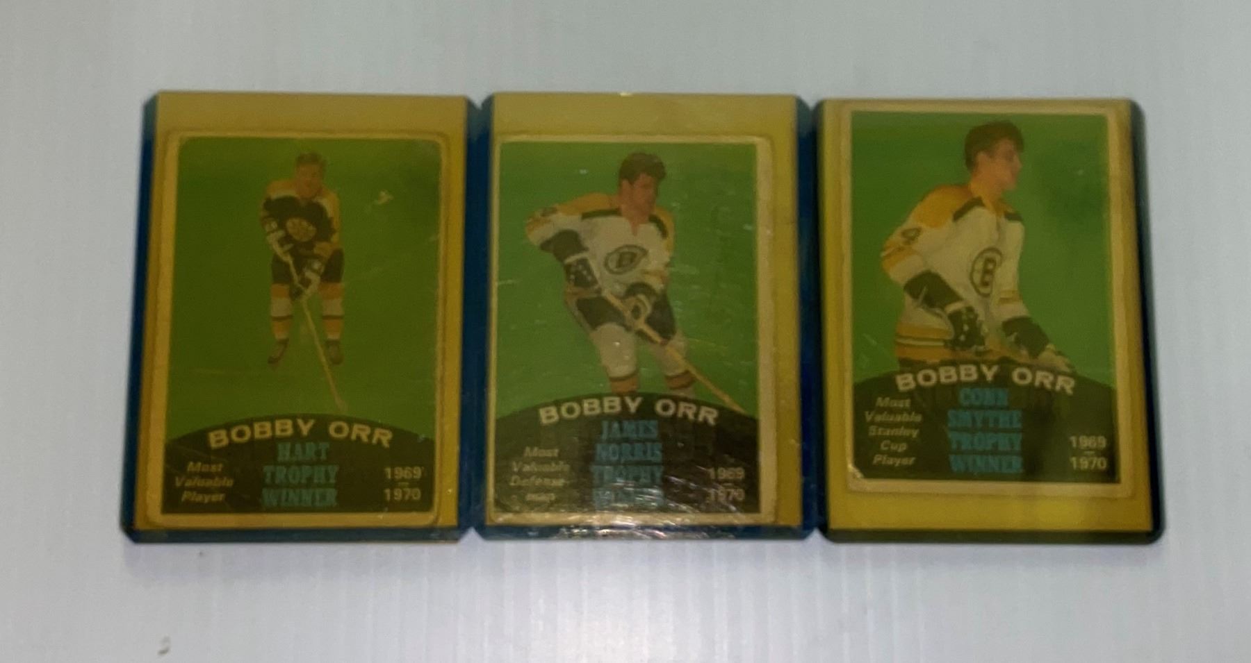 3 Bobby Orr 1969 - 1970 collector's hockey cards