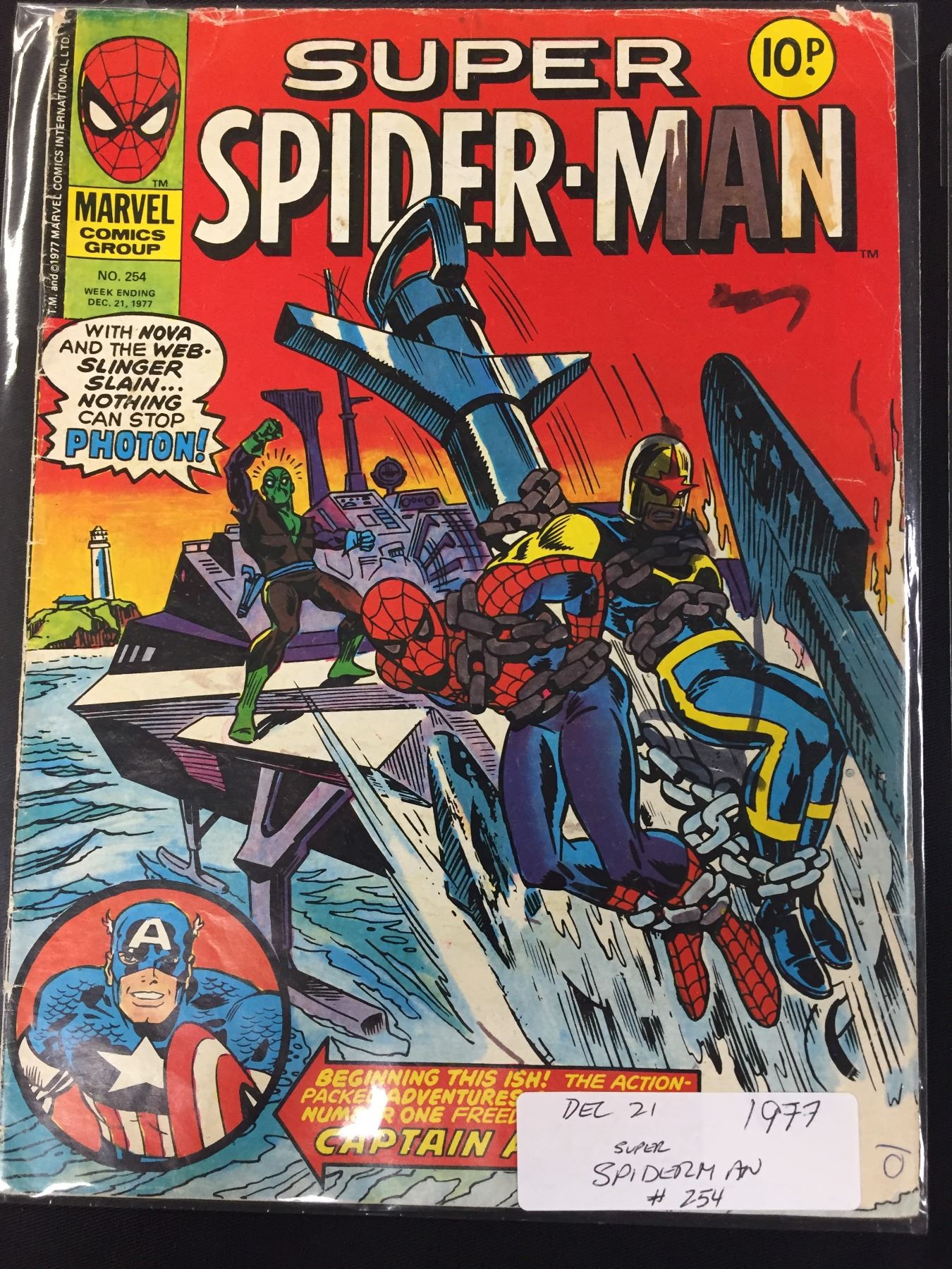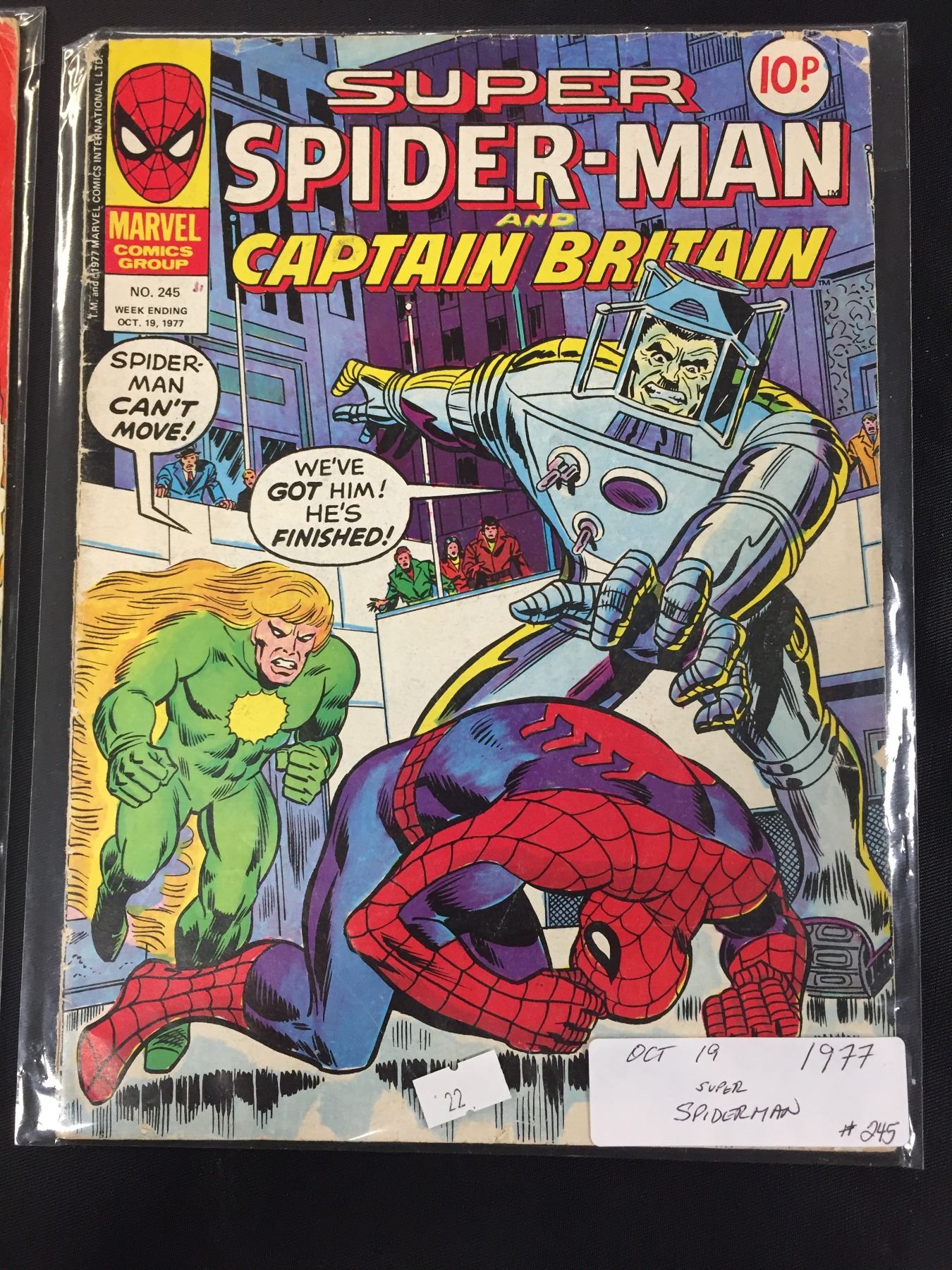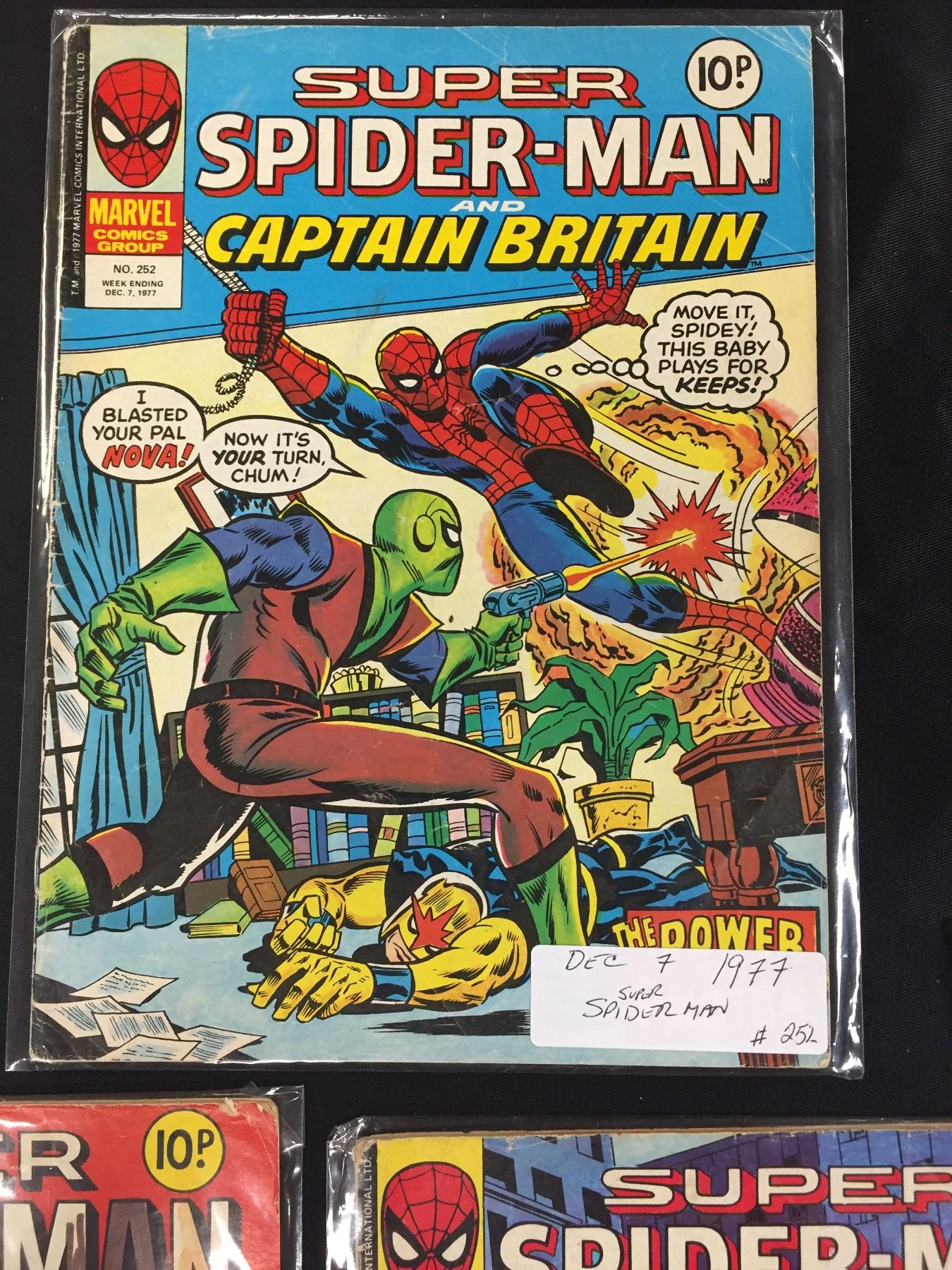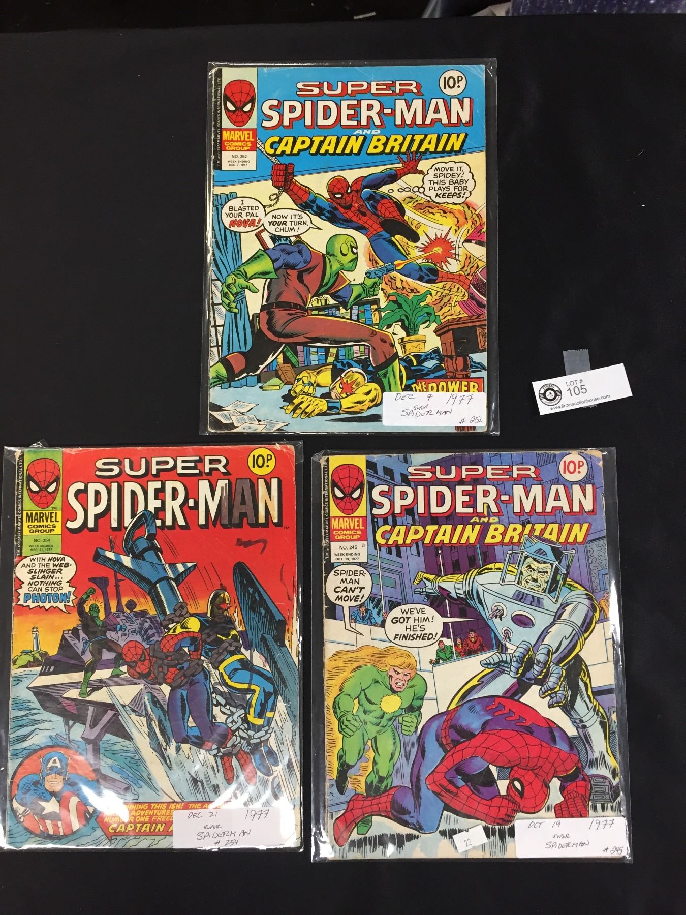 3 British Comic Books 1977 Super Spiderman and Captain Britain. Vol. #245,252,254 in Bags
