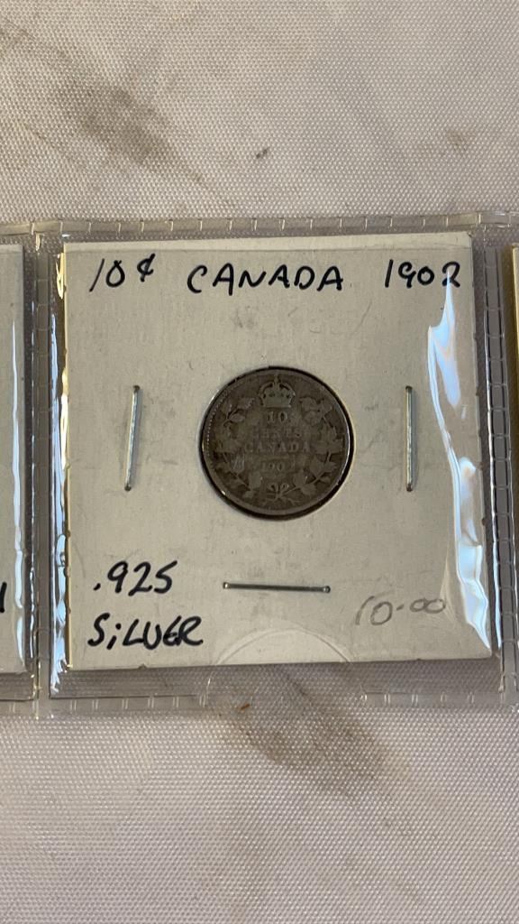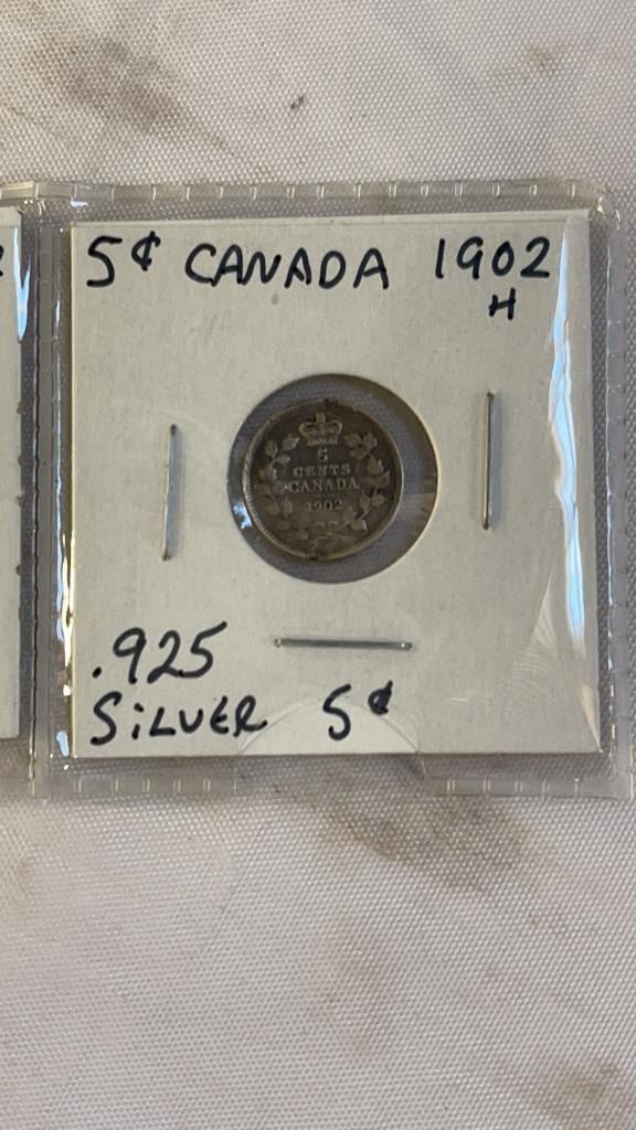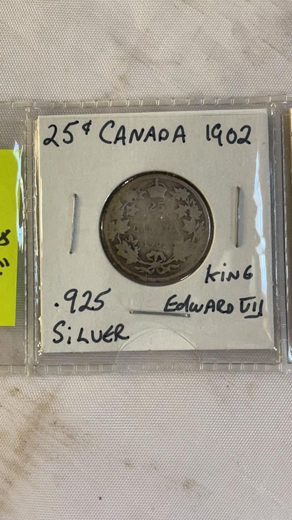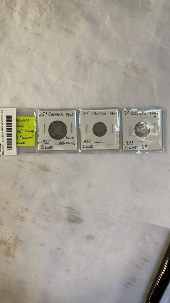 3 CANADIAN 1902 EDWARD VII COINS 25 CENT, 10 CENT, AND 5 CENT ALL .925 SILVER