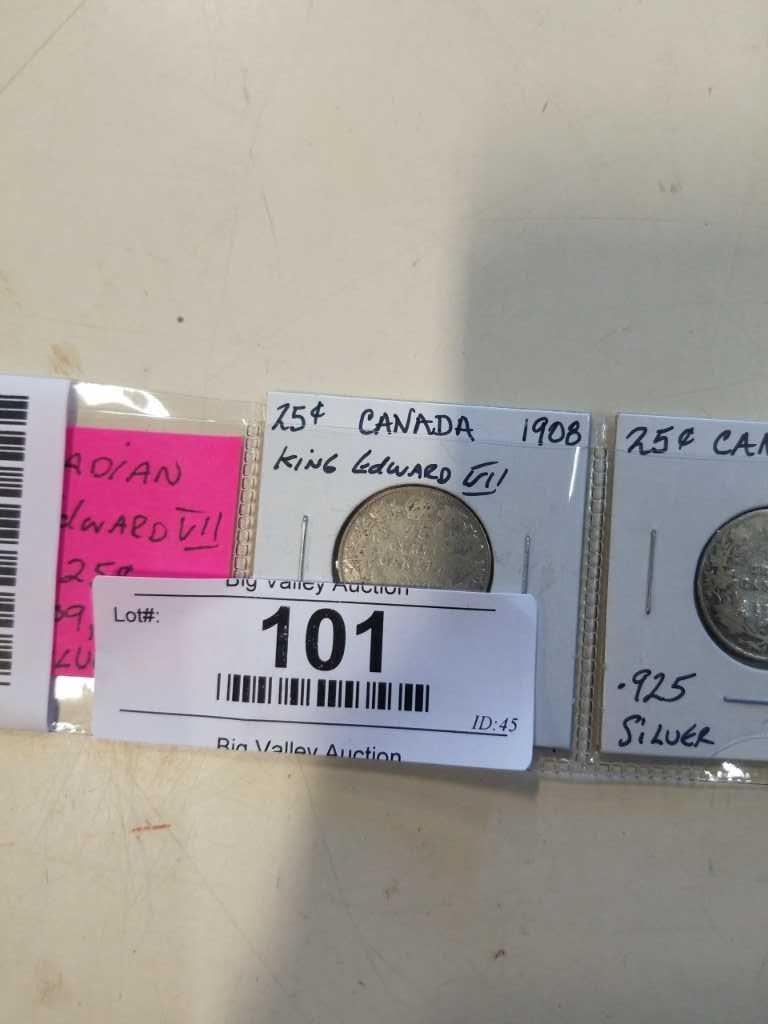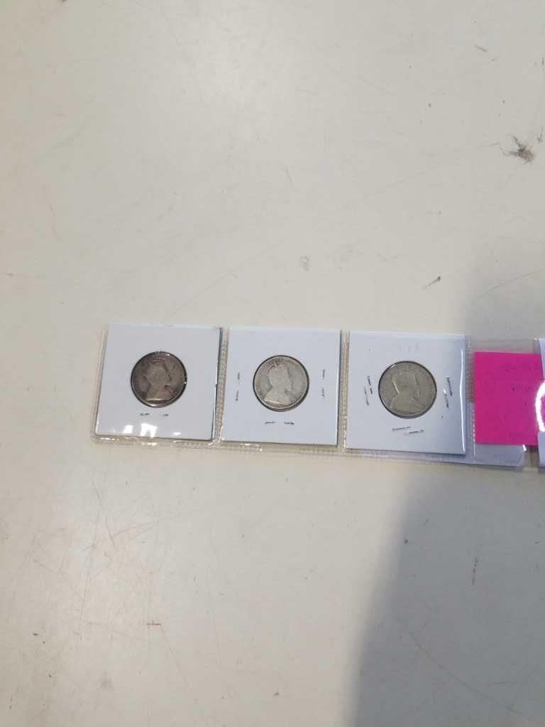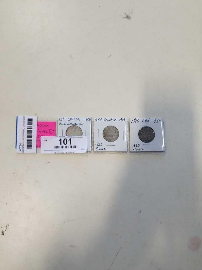 3 CANADIAN KING EDWARD VII SILVER 25 CENT 1908-1910 .925 SILVER