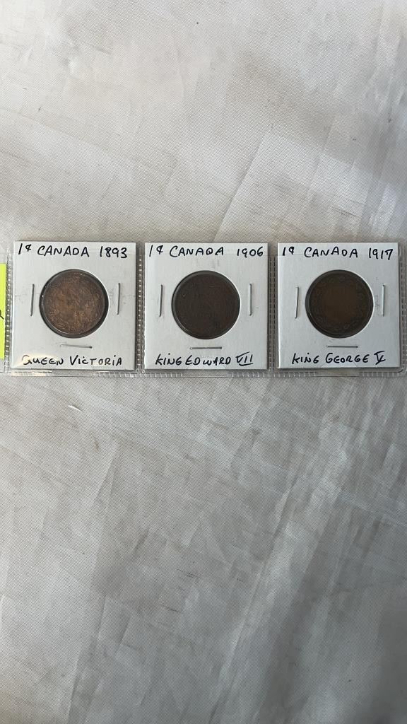 3 CANADIAN LARGE CENTS - 1983 VICTORIA; 1906 EDWARD VII; 1917 GEORGE V
