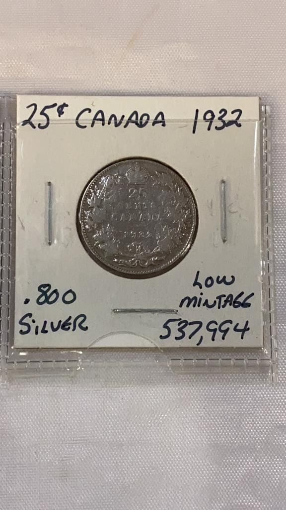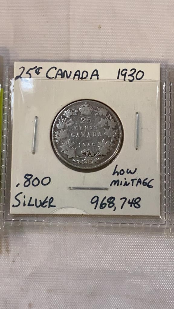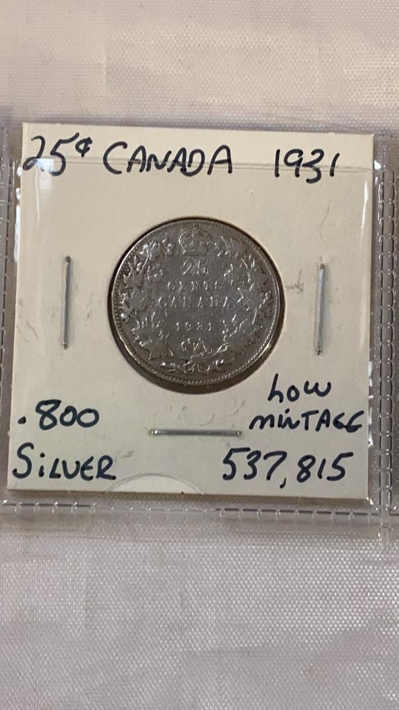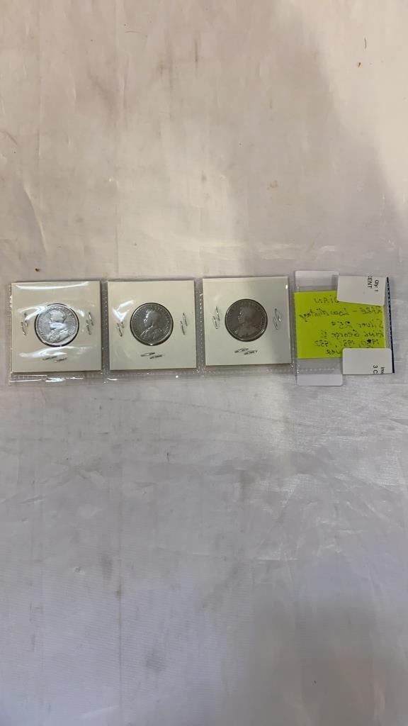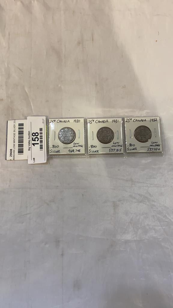 3 CANADIAN LOW MINTAGE SILVER 25 CENT KING GEORGE V 1930-1932 .800 SILVER