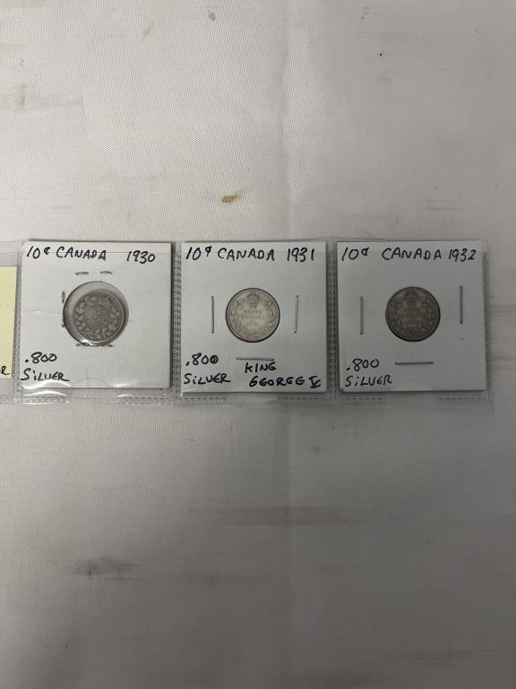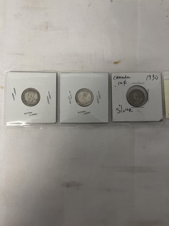 3 CANADIAN LOW MINTAGE SILVER DIMES 1930, 1931, 1932 .800 SILVER