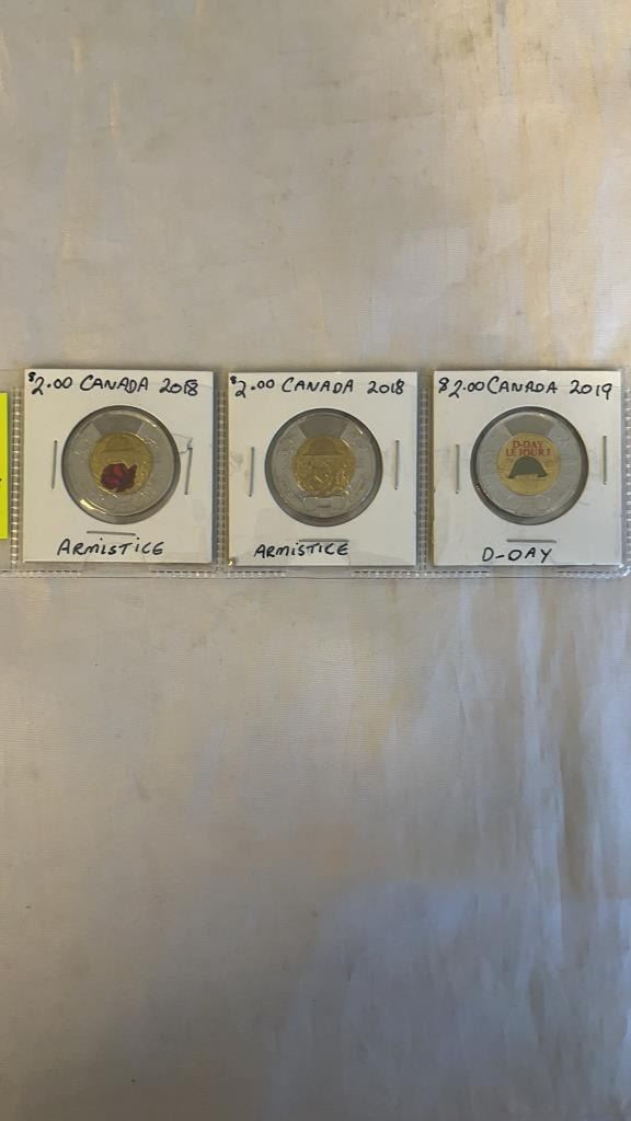 3 CANADIAN RARE TOONIES - 2018 ARMISTICE (BOTH TYPES) 2019 D-DAY
