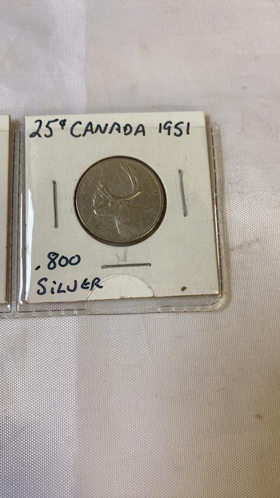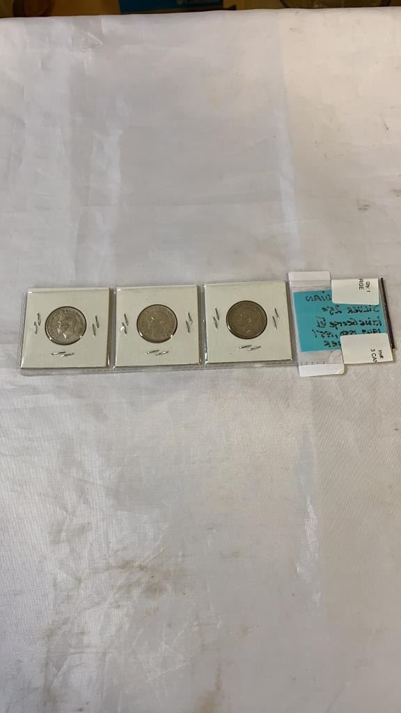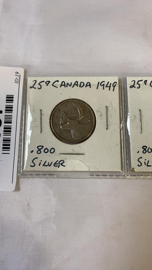 3 CANADIAN SILVER 25 CENT KING GEORGE VI 1949-1951 .800 SILVER