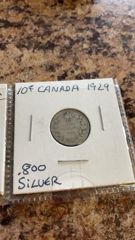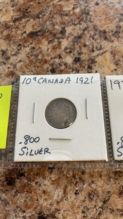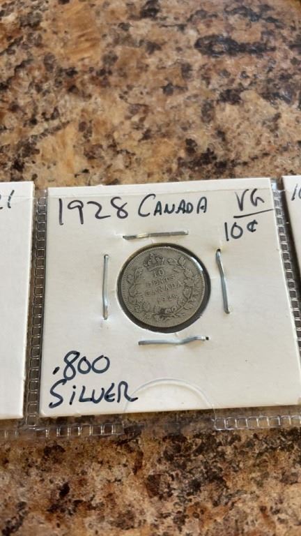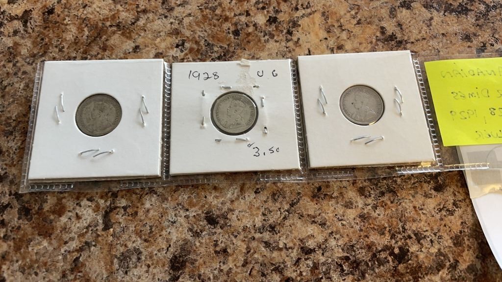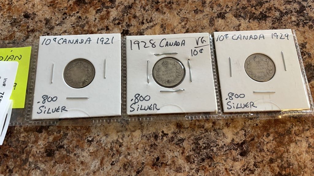 3 CANADIAN SILVER DIMES 1921, 1928, 1929 .800 SILVER