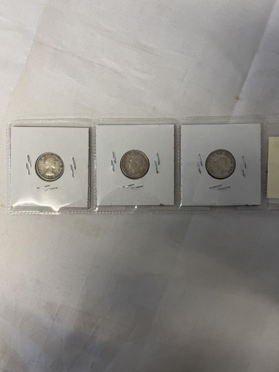 3 CANADIAN SILVER DIMES 1951, 1952, LAST KING GEORGE II, 1953 FIRST QUEEN ELIZABETH II .800 SILVER