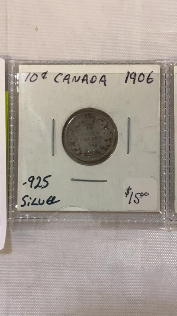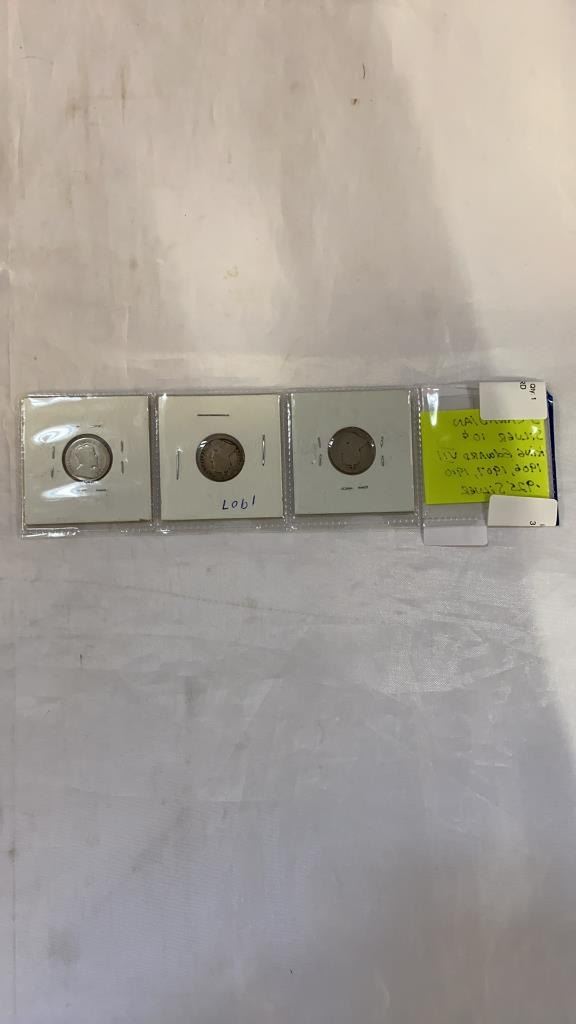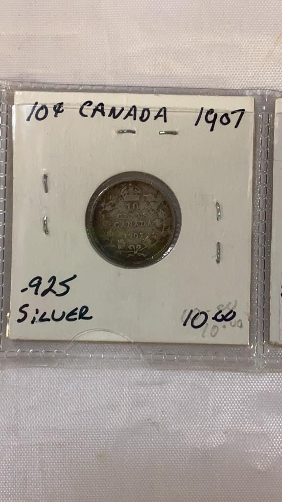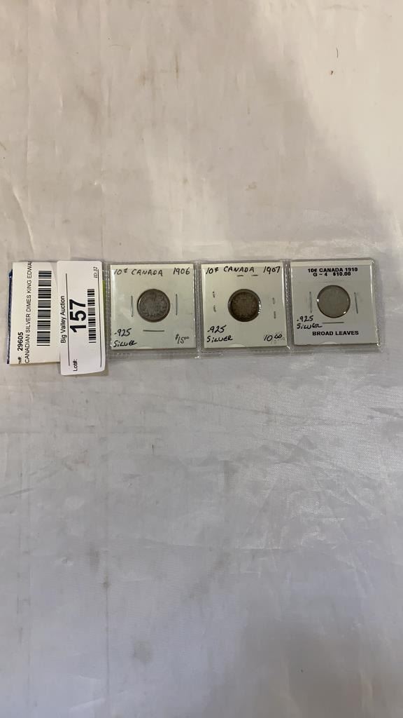 3 CANADIAN SILVER DIMES KING EDWARD VII - 1906, 1907, 1910 .925 SILVER