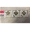 3 CANADIAN SILVER WARTIME 25 CENT COINS - 1941-1943, .800 SILVER