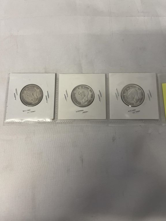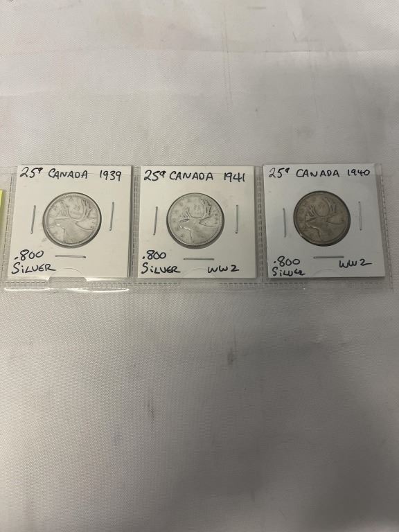 3 CANADIAN SILVER WWII 1939, 1940, 1941 .800 SILVER