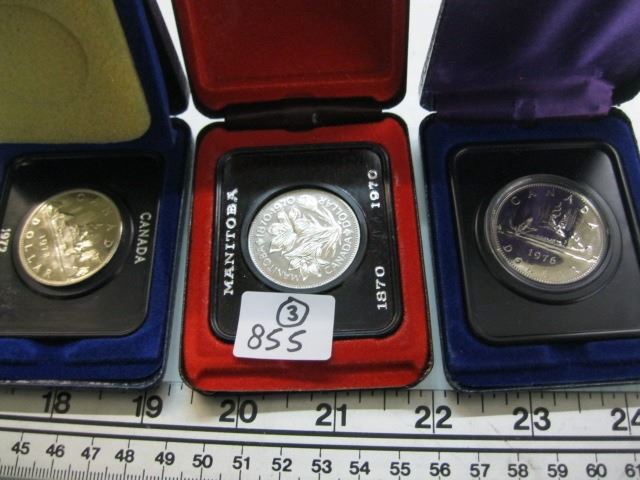 3 CASED CANADIAN $1 COINS, 1972, 1970 & 1976