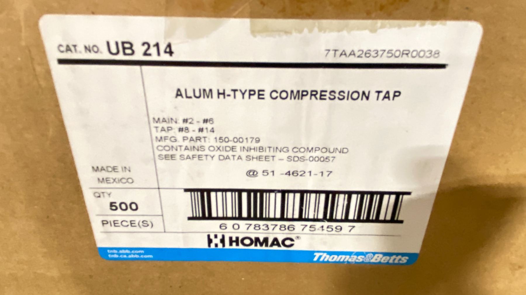 3 CASES OF UB 214 ALUMINUM H-TYPE COMPRESSION CONNECTORS 500 PER CASE
