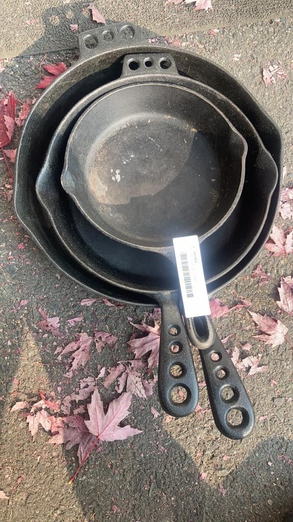 3 CAST IRON FRYING PANS