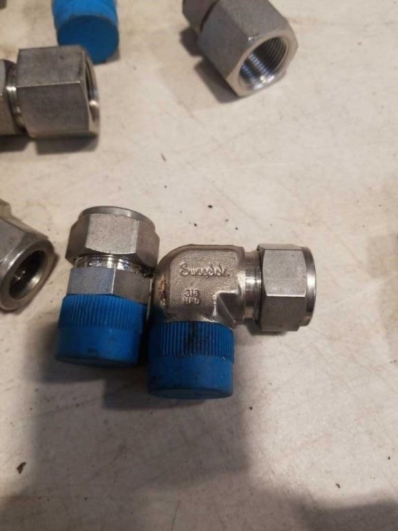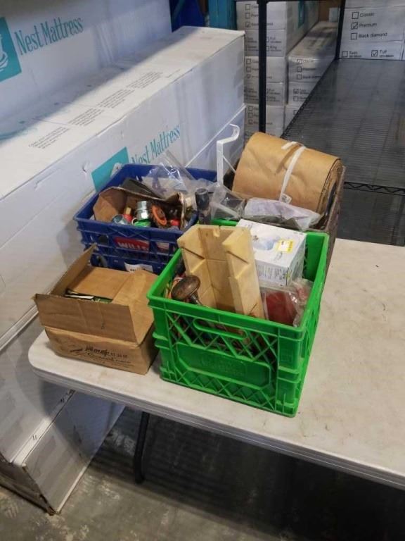 3 CRATES AND BOX OF SHOP SUPPLIES, SWAGELOK AND COPPER AND BRASS FITTINGS, HARDWARE, HOLE PUNCHES