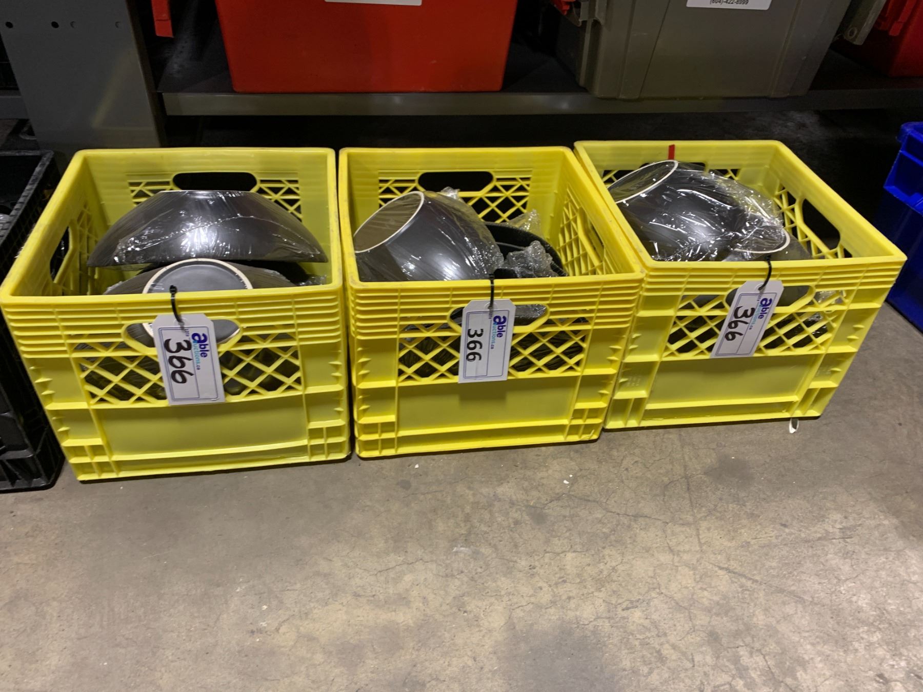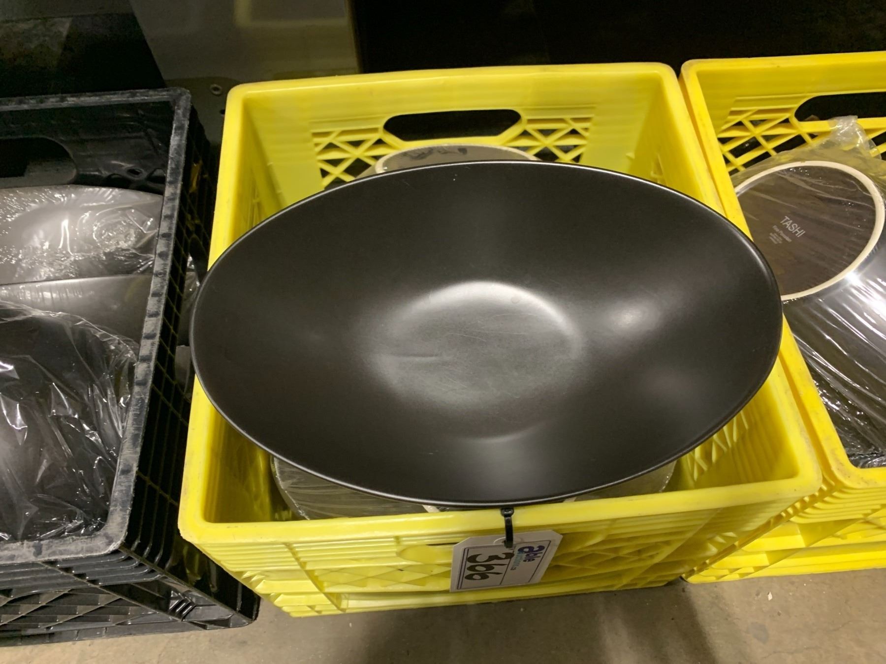 3 CRATES OF MATTE BLACK OVAL SERVING BOWLS 12" X 8" *CRATES INCLUDED* ( APPROX. 6 BOWL PER CRATE, 18 BOWLS TOTAL )