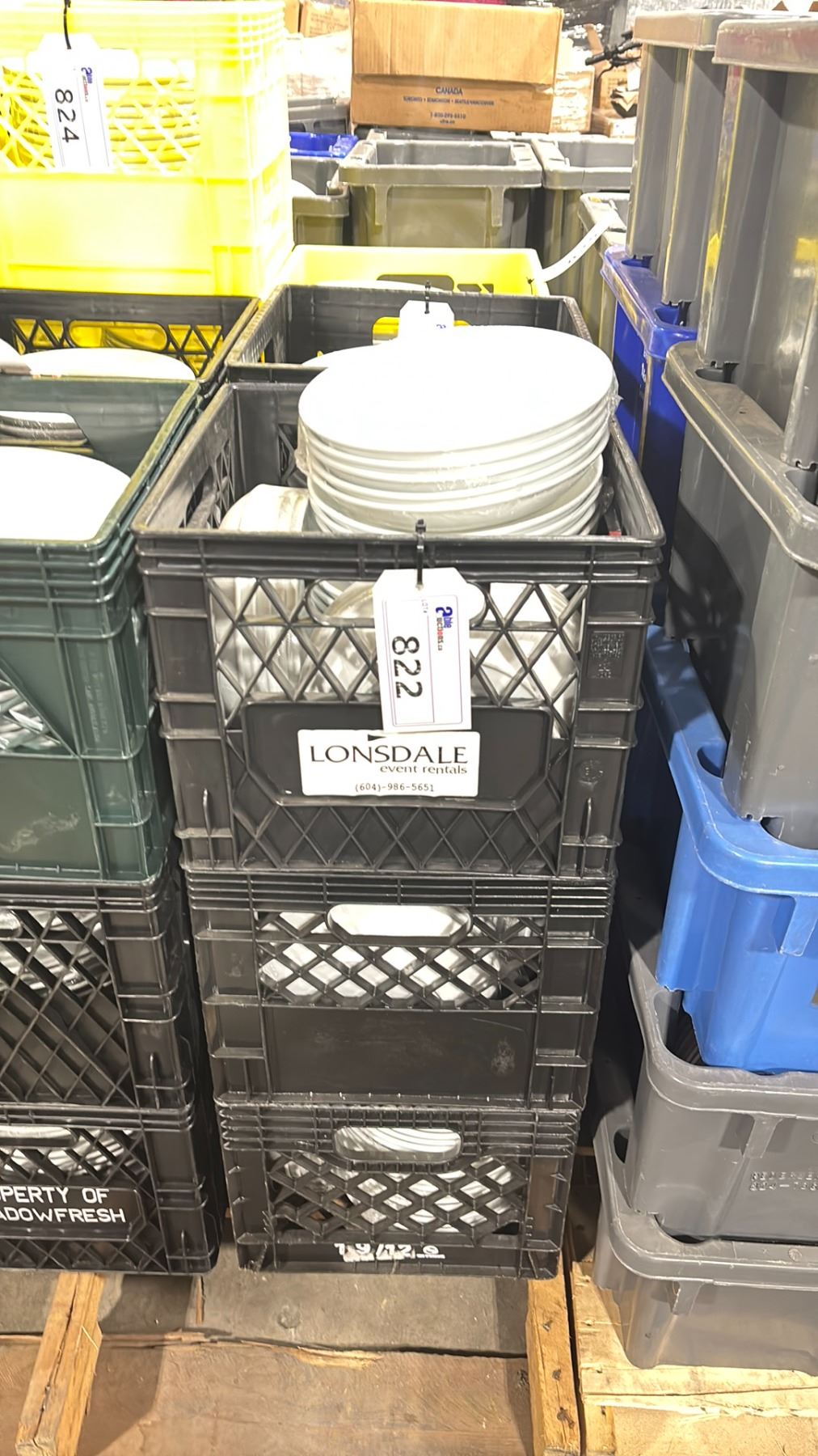 3 CRATES OF WHITE 9" COMMERCIAL RESTAURANT SHALLOW BOWLS *CRATES INCLUDED* ( APPROX. 25 BOWLS PER CRATE, 75 BOWLS TOTAL )