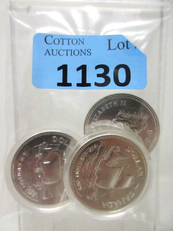 Two 1979 Griffon Commemorative Dollars (encapsulated) and one 1984 City of Toronto Dollar.