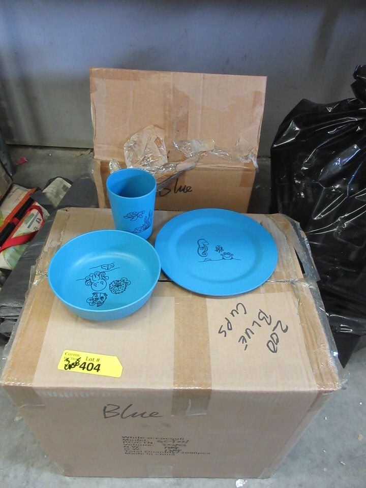Ocean theme. Case of 200 tumblers, cases of 100 sandwich plates & case of 80 bowls