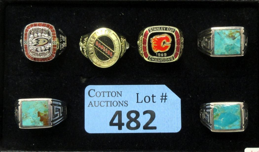 Team rings are Flames, Rangers and Anaheim. Assorted sizes.