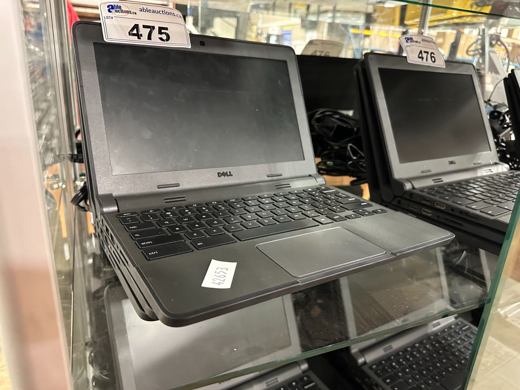 3 DELL GOOGLE CHROMEBOOK LAPTOP COMPUTERS WITH POWER SUPPLIES ( C GRADE )