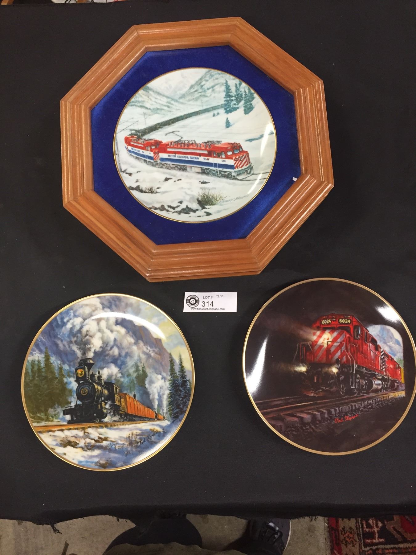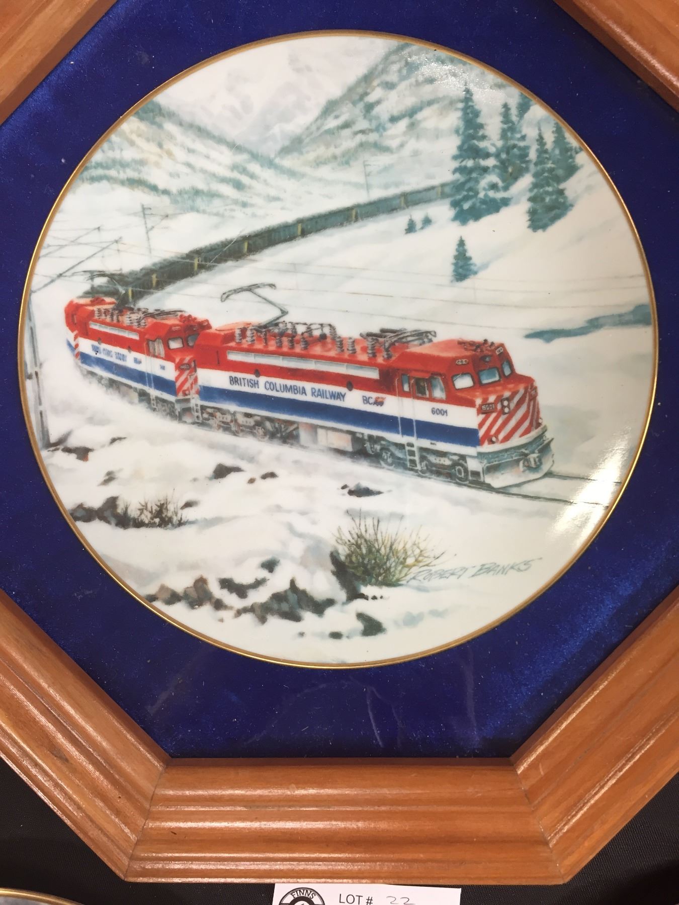 3 Decorative Train Plates with one of them being BC Railway. In a frame