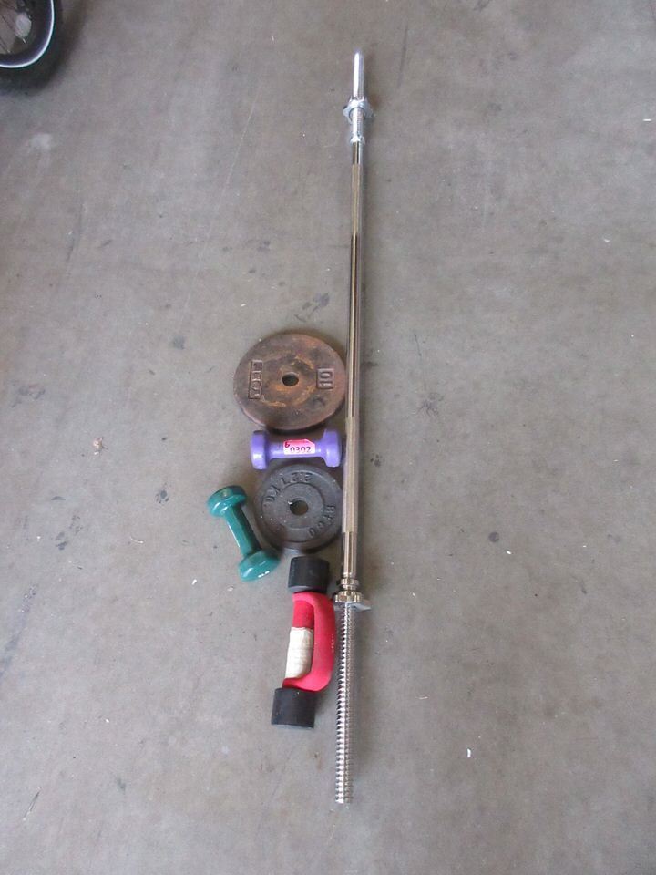 3 Dumbbells, 2 Weight Plates & 1 Weight Bar