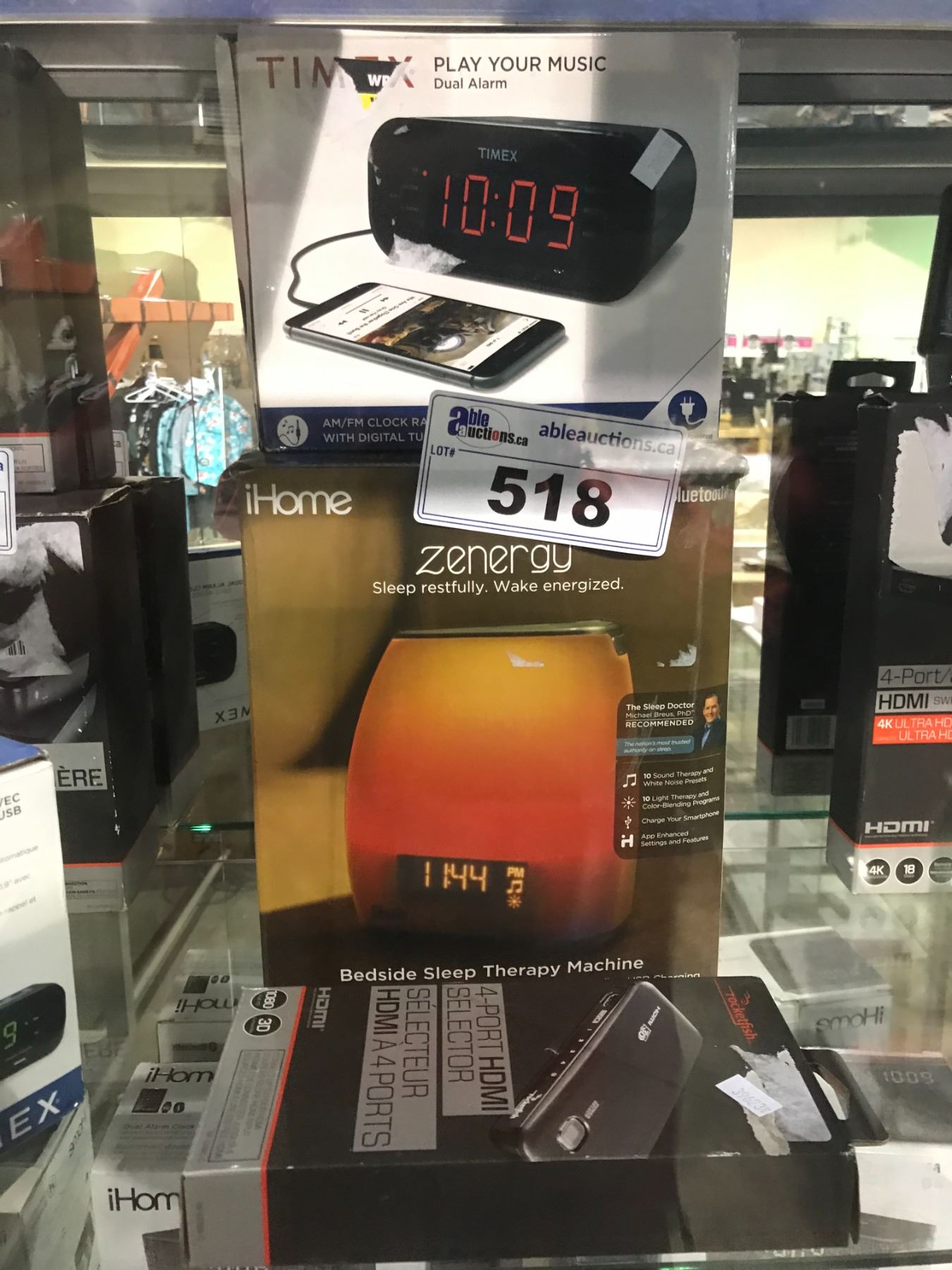 3 ELECTRONIC PRODUCTS SUCH AS: IHOME ZENERGY BLUETOOTH BEDSIDE SLEEP THERAPY MACHINE, TIMEX DUAL ALARM CLOCK, & HDMI SELECTOR