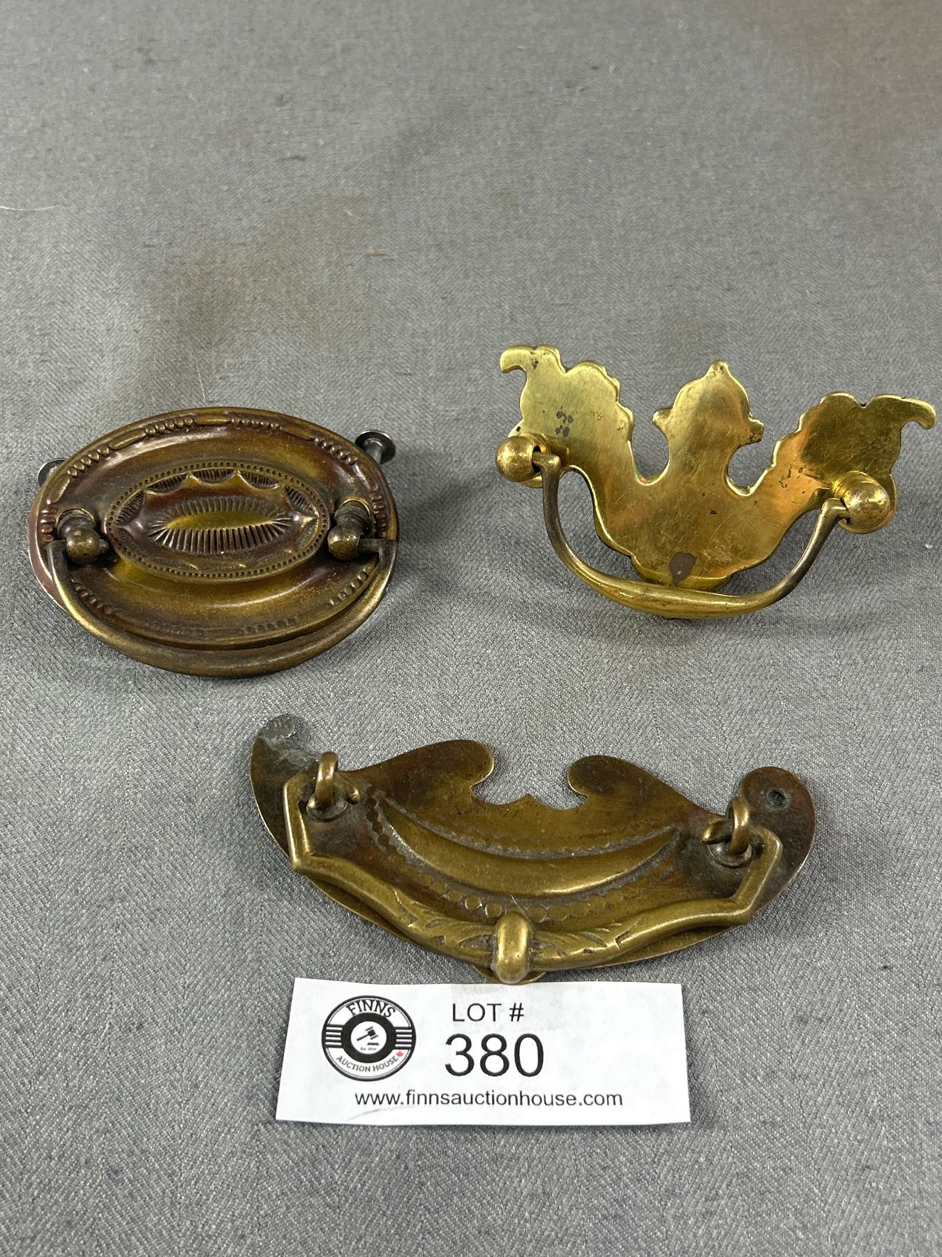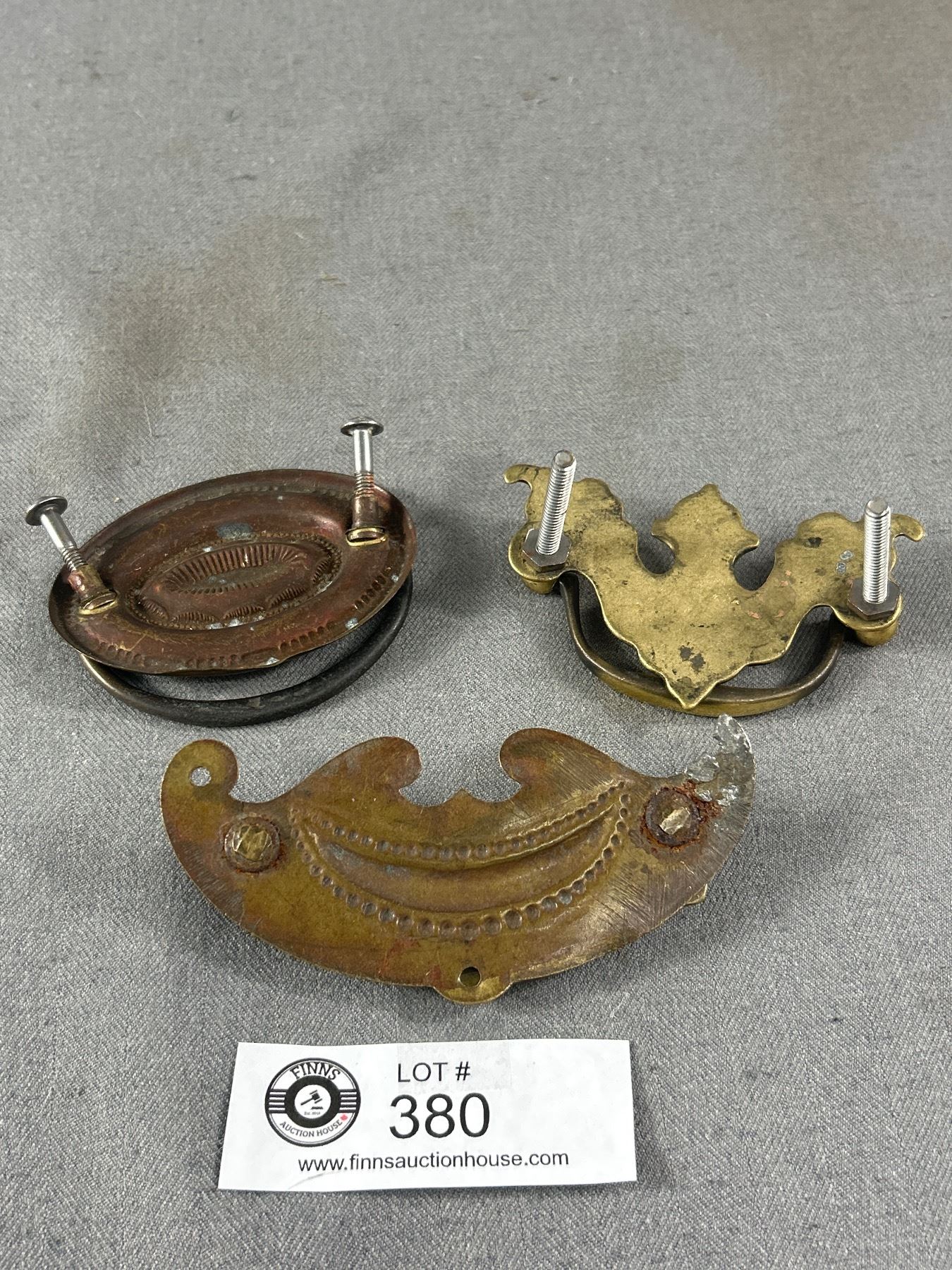 3 Early 1900's Fancy Brass Drawer Pulls